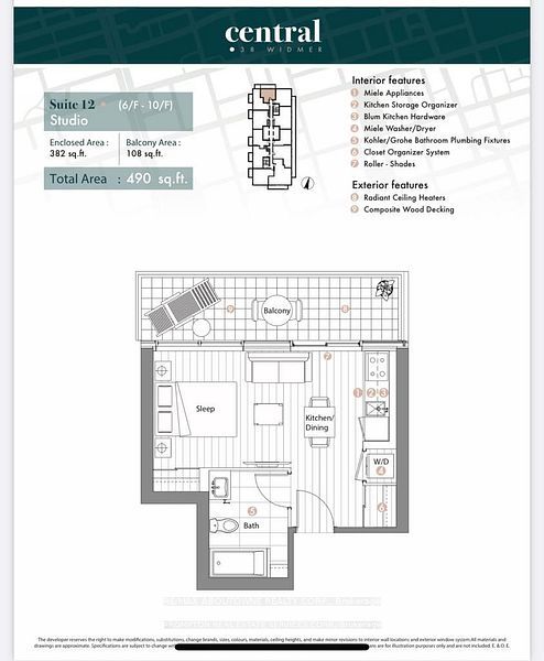 Welcome to Central! Urban Luxury Living In This High-Tech Downtown Condo, Where Cutting-Edge Design Meets Unparalleled Convenience. Featuring 100% Wifi Connectivity, State-Of-The-Art Conference Rooms, Wireless Charging Stations, NFC Building Entry, Smart Thermostats, Refrigerated Parcel Storage, Just To Name A Few. Contemporary Interior Featuring Large windows, Gourmet Chef's Kitchen With Miele Appliances, Spa-Inspired Bathroom, Private Balcony With Stylist Flooring And Patio Heater. Prime Downtown Location, Walking Distance To Restaurants, TTC And Many More!