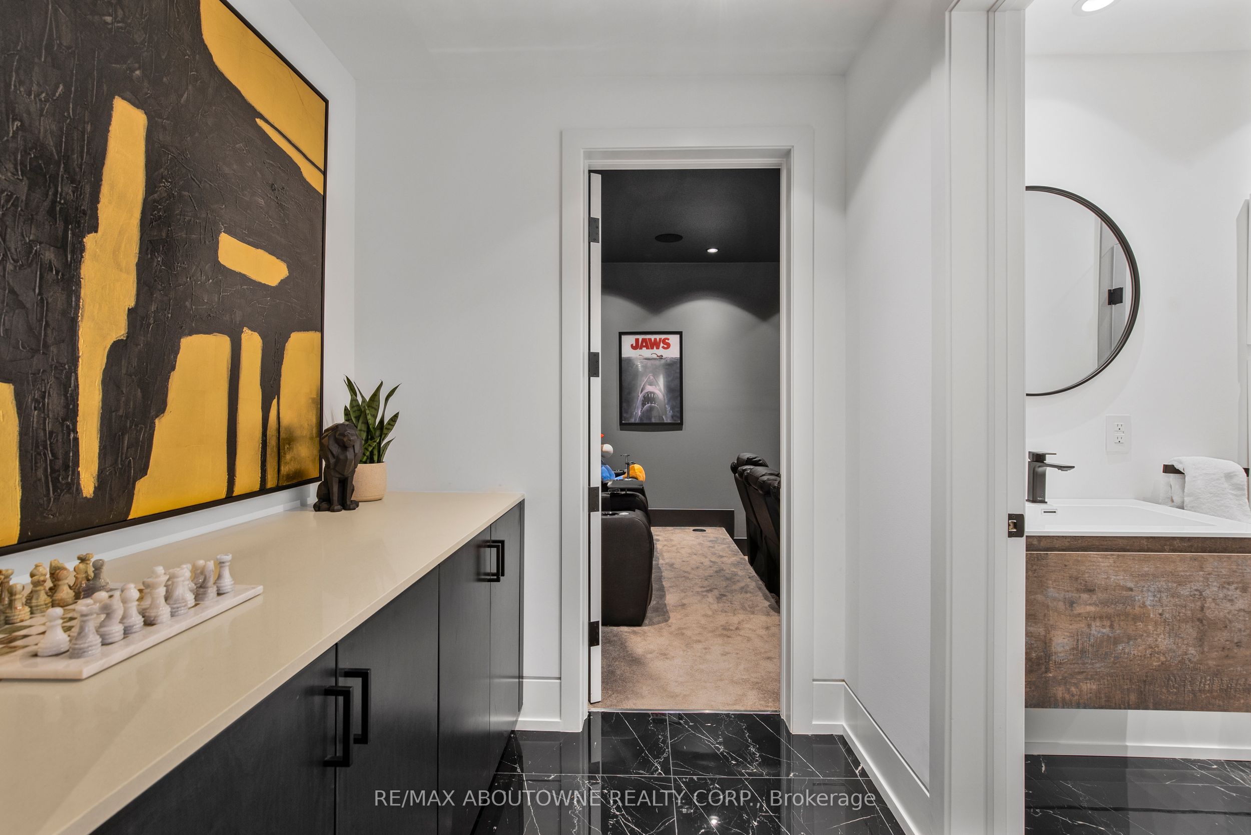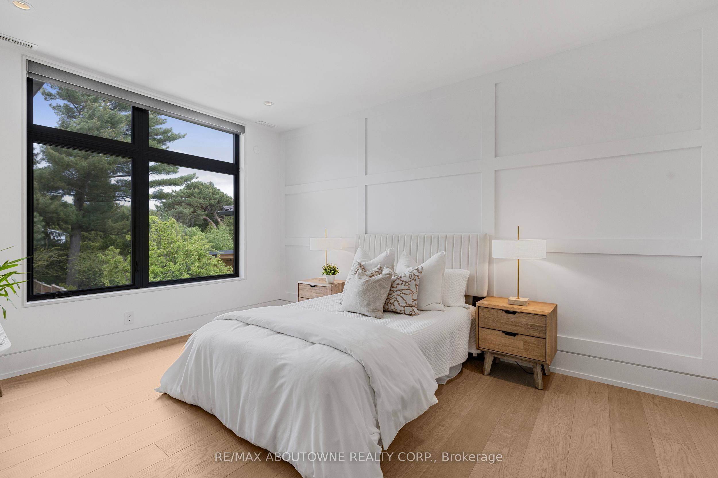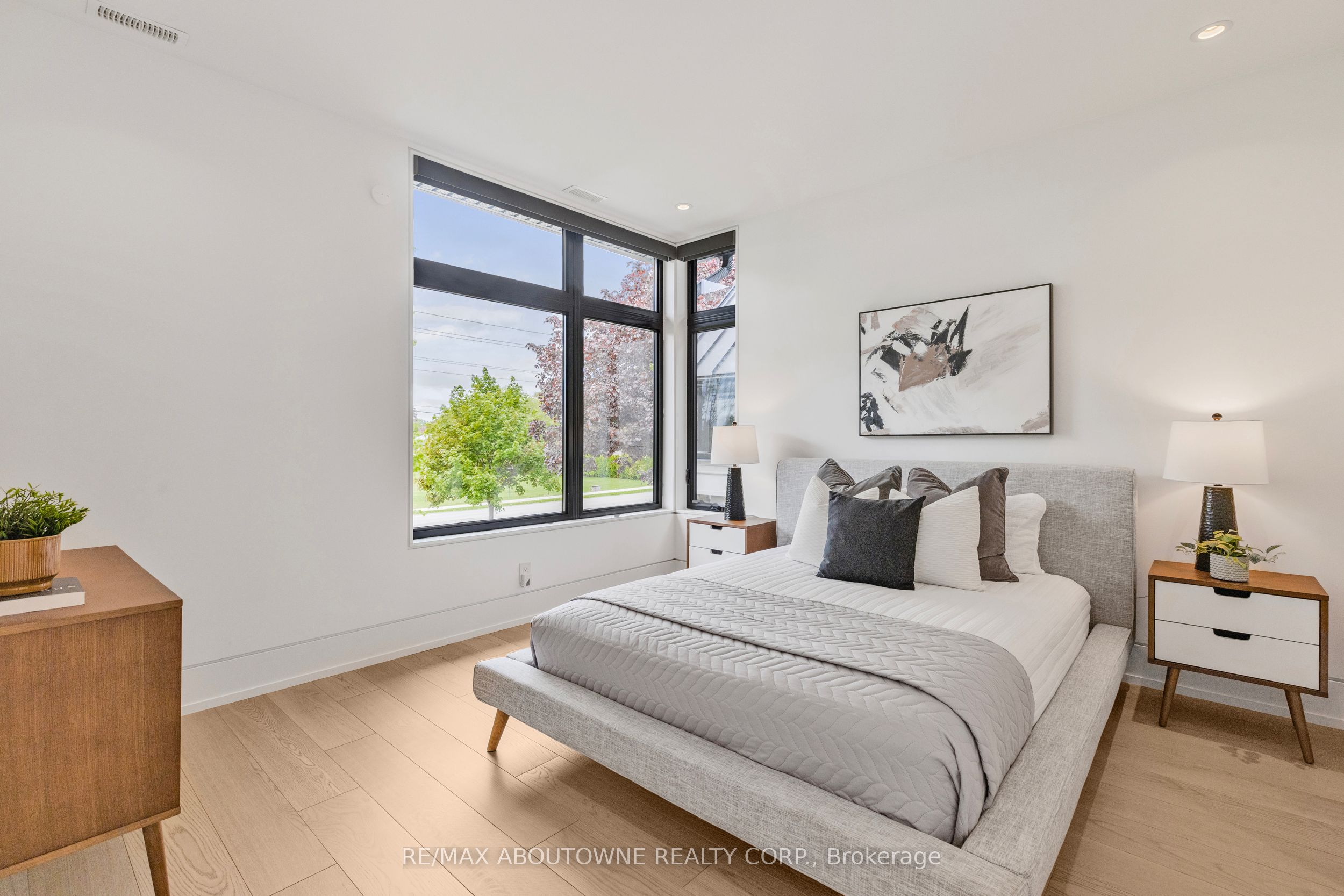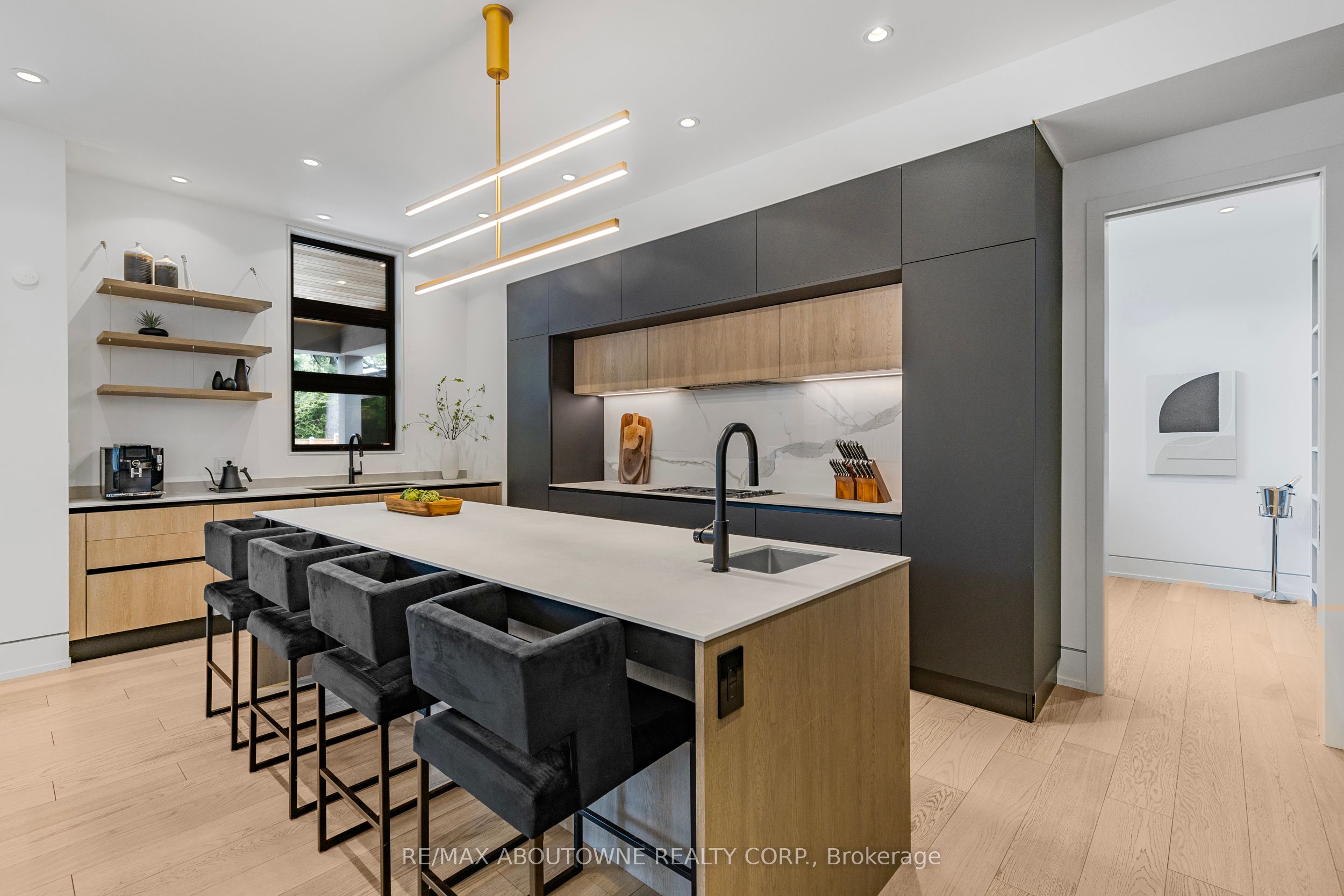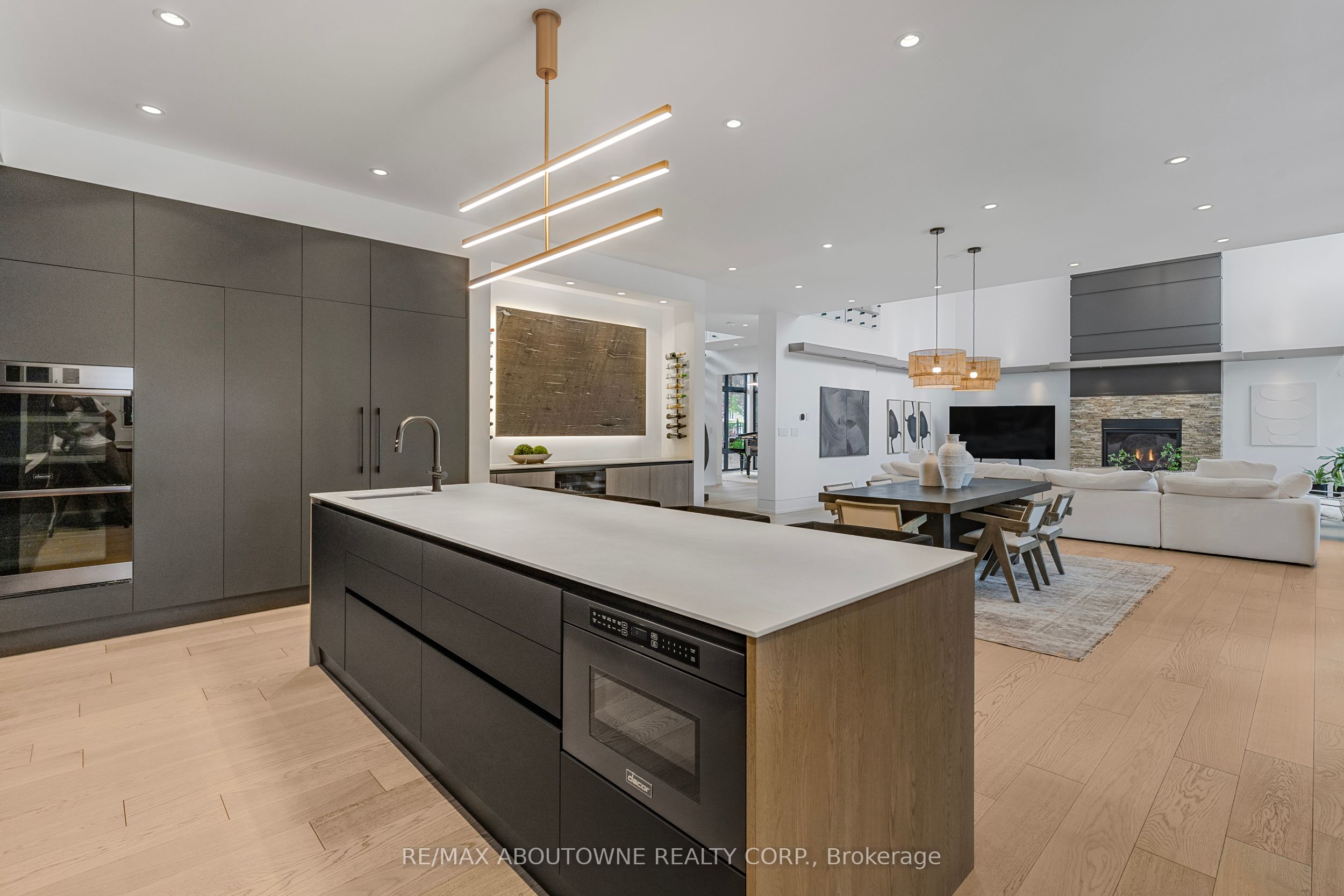Stunning custom-built modern home designed by David Small located in West Oakville. This 2-storey, 5-bedroom, 5 bathroom residence spans over 4,000 square feet of above grade living space and has approx. $250,000 in recent upgrades. The grand foyer features 20-foot ceilings and large windows that allow natural light to flood the area. The open concept main level offers panoramic views and leads into the living area, also featuring 20-foot ceilings & Lutron Control 4 Lighting system. Sleek designer kitchen is equipped with custom-made Scavolini cabinets, high-end Dacor appliances, a cooktop stove, and a large walk-in pantry. The spacious family room includes a gas fireplace and large sliding glass doors that provide access to the fully fenced private backyard, complete with an inground pool, basketball court, and entertainment area. The 2nd level boasts a stunning primary bedroom with a 5-piece ensuite, double sinks, & walk-in closet. Additionally, there are 3 more generous bedrooms; 2 of which share a 4-piece Jack & Jill bathroom, & another with ensuite privileges as well as a laundry room completing the 2nd level. The fully finished lower level features heated floors, recreation room with gas fireplace, large gym, ample storage space, another bedroom, a 3-piece bathroom, a state-of-the-art theatre room, & a walk-up to the stunning backyard. The backyard has been meticulously landscaped and features a basketball court, fireplace, inground pool, inground sprinkler system, Lutron lighting system, and an entertainment area. Additional amenities include garage car lift, Scavolini closets, two furnaces, two air conditioners, Hunter Douglas motorized blinds, security film on all windows and a paved driveway accommodating up to six cars. Located within walking distance to several top schools, restaurants, Lake Ontario, coffee shops, and minutes from downtown Oakville, the QEW, and Appleby College. Do not miss the opportunity to own this exceptional home.