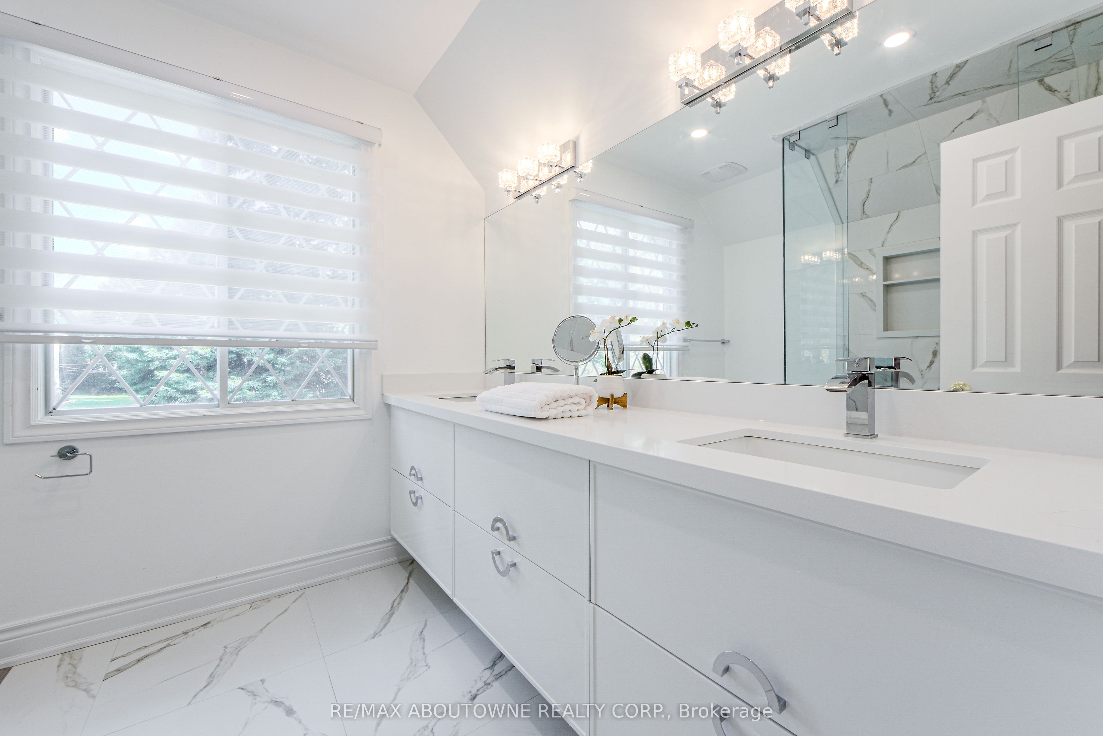 Just steps to Lake Ontario, set on an expansive 103 x 161 lot surrounded by mature trees and offering nearly 4400sqft of total living space, this beautifully refreshed 5+1-bedroom Tudor-style home sits on a picturesque, tree-lined street in one of Oakvilles most sought-after neighborhoods. Within the catchment area for top-rated schools including Oakville Trafalgar High School, Maple Grove Public School, and E.J. James Public School, and just a short drive to Appleby College, this property combines elegance, comfort, and convenience.Recent updates include a brand-new front door, Zebra shades, modern light fixtures, pot lights in principal rooms, refinished parquet floors, and a custom rear deck. All three bathrooms have been tastefully renovated with quartz countertops, new vanities and faucets, designer tile, and a frameless glass shower in the primary ensuite.Designed for everyday living and entertaining, the main level offers a spacious living room with a stone wood-burning fireplace, formal dining room, gourmet kitchen with breakfast area and walkout to deck, and a family room featuring a second stone fireplace and another walkout to the backyard. A laundry room with garage access completes this level.Upstairs, the primary suite includes double closets and a spa-inspired ensuite with double sinks and glass shower. Four additional bedrooms share a luxurious five-piece bathroom with double sinks.The newly finished basement adds even more versatility, featuring luxury vinyl plank flooring, pot lights, a large recreation room with electric fireplace, sixth bedroom, office, and ample storage space.