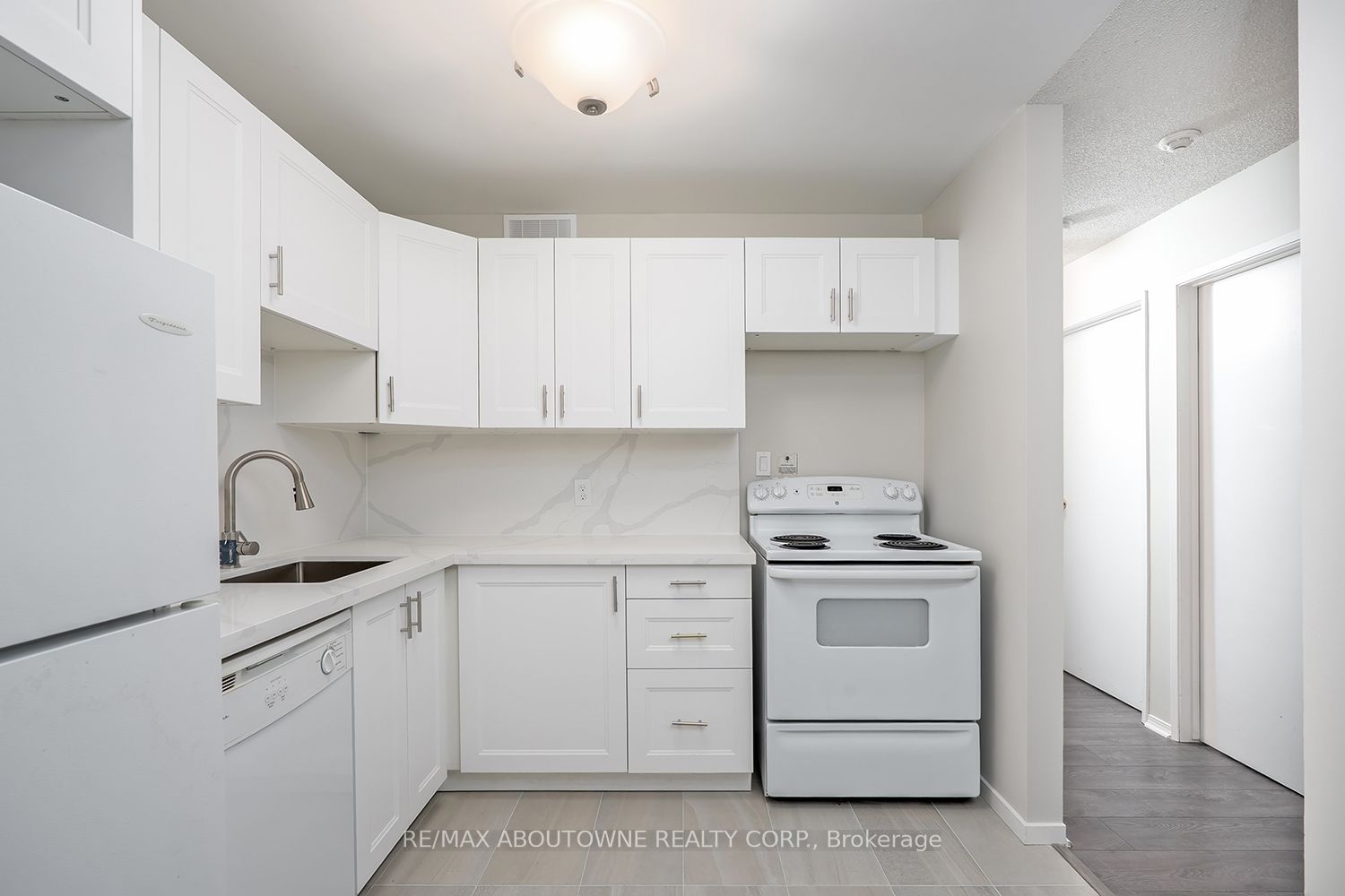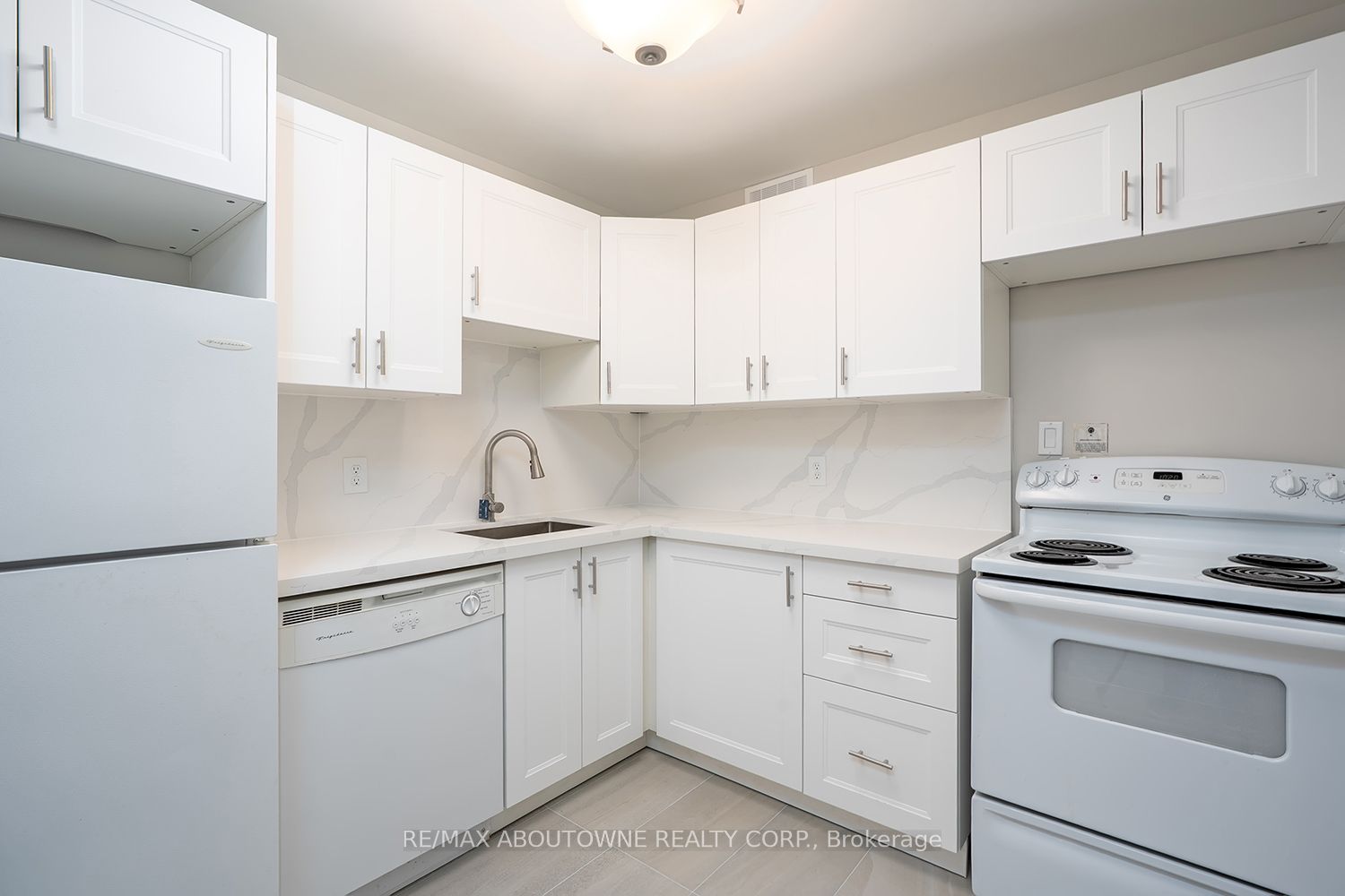 Welcome to this beautifully updated, freshly painted 2-bedroom, 1-bathroom condo located in the highly sought-after Glen Abbey neighbourhood of Oakville. This carpet free unit offers a functional open concept living room/dining room layout, cozy wood burning fireplace, and quality laminate flooring flowing throughout. The kitchen features brand new white cabinets with soft close, new quartz counter and backsplash, and elegant new ceramic flooring. The primary bedroom offers a large walk in closet and a bright updated ensuite with new modern vanity, new mirror, new modern lighting, new fixtures, new ceramic tiled shower and flooring, and large linen closet. Convenient in suite laundry, sizeable in suite storage room, and additional storage locker on the balcony. Conveniently located across from highly ranked Abbey Park High School and walking distance to other top rated schools, recreation centre, parks, library, shopping, and lush ravine/walking trail system. Convenient access to QEW, GO station, and 5 minute drive to Oakville Hospital. Tenant pays for hydro, cable TV, internet and tenants insurance. Some photos are virtually staged.