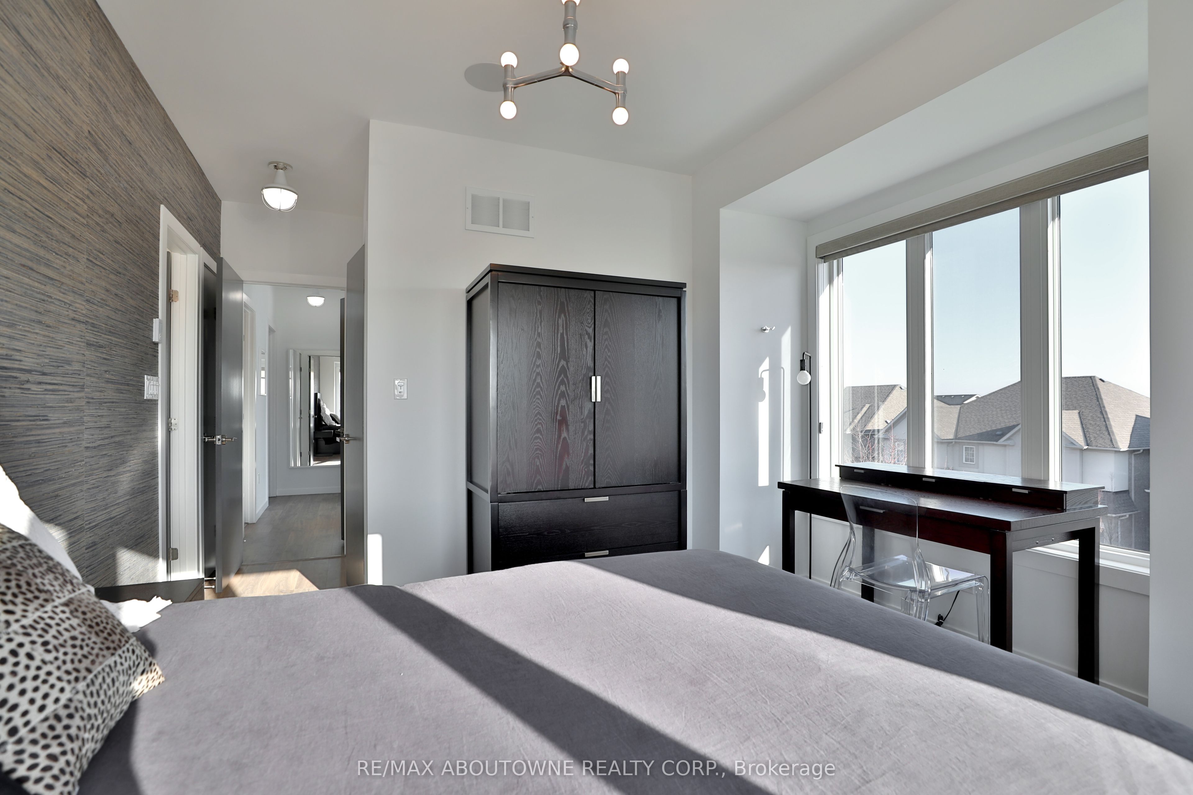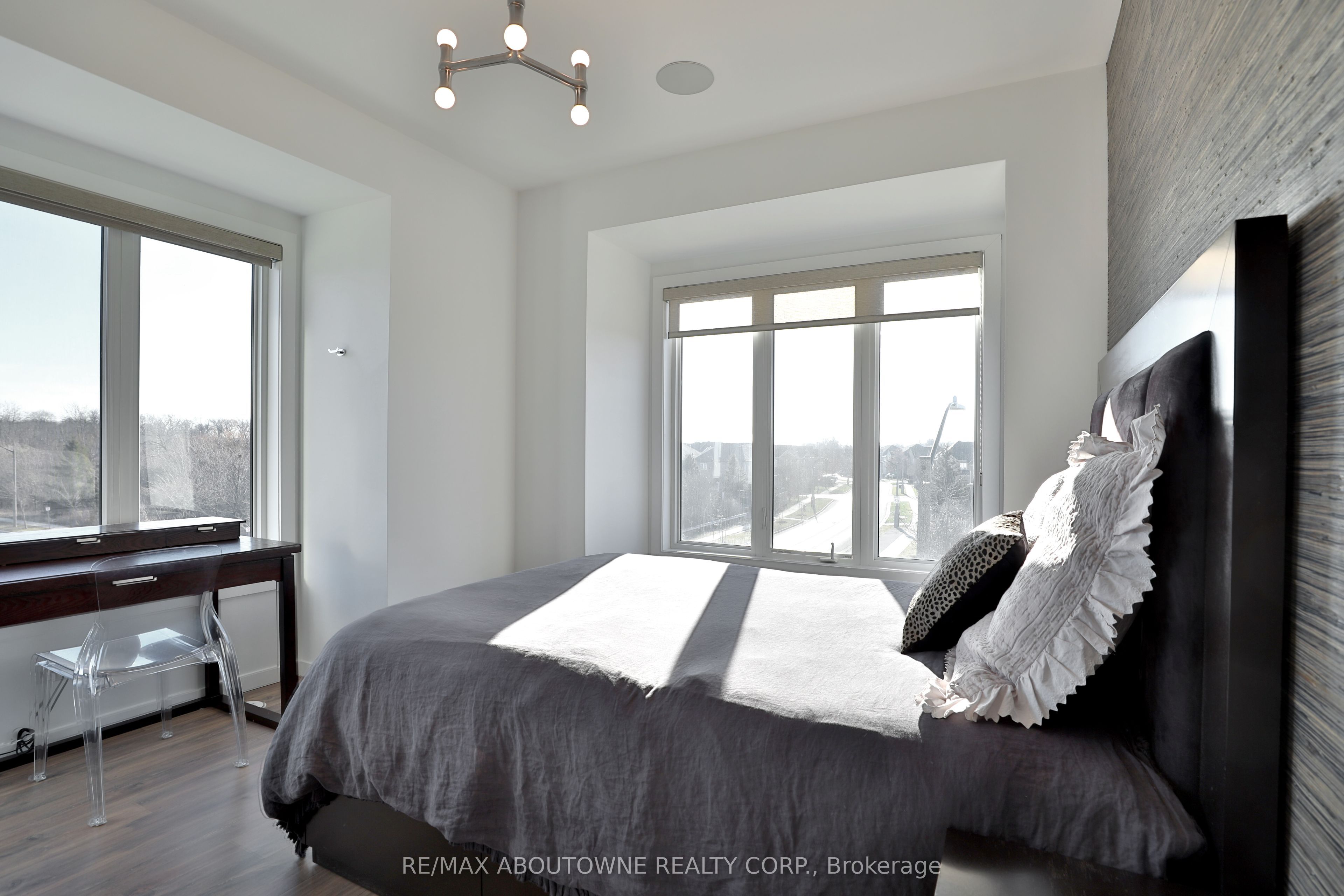 Absolutely stunning 3-bedroom executive END-UNIT townhome offering approximately 1,931 sq. ft of refined living space-perfect for a couple or small family with a modern, flexible lifestyle. This coveted end unit features south and west exposures, flooding all three levels with natural light, and includes two private balconies. Designed for an executive lifestyle, this turn-key home blends modern industrial style with sophisticated functionality and showcases extensive custom upgrades throughout. Beautifully landscaped perennial gardens and chic concrete and wood privacy partitions enhance the outdoor space, while the southwest-facing orientation overlooks expansive green space stretching toward the lake. The home includes parking for two cars plus ample visitor parking within the complex. Located in the sought-after Lakeshore Woods community, bordering trendy Bronte, and just minutes from Lake Ontario, waterfront parks, beaches, and Bronte Harbour. Nearby revitalized Bronte Village offers charming shops, restaurants, and pubs, with the Burloak Smart Centre, featuring big-box stores, dining, entertainment, and professional services, just a short drive away. Convenient access to highways, GO Train, and public transit makes this an ideal option for commuters. A must-see executive rental.