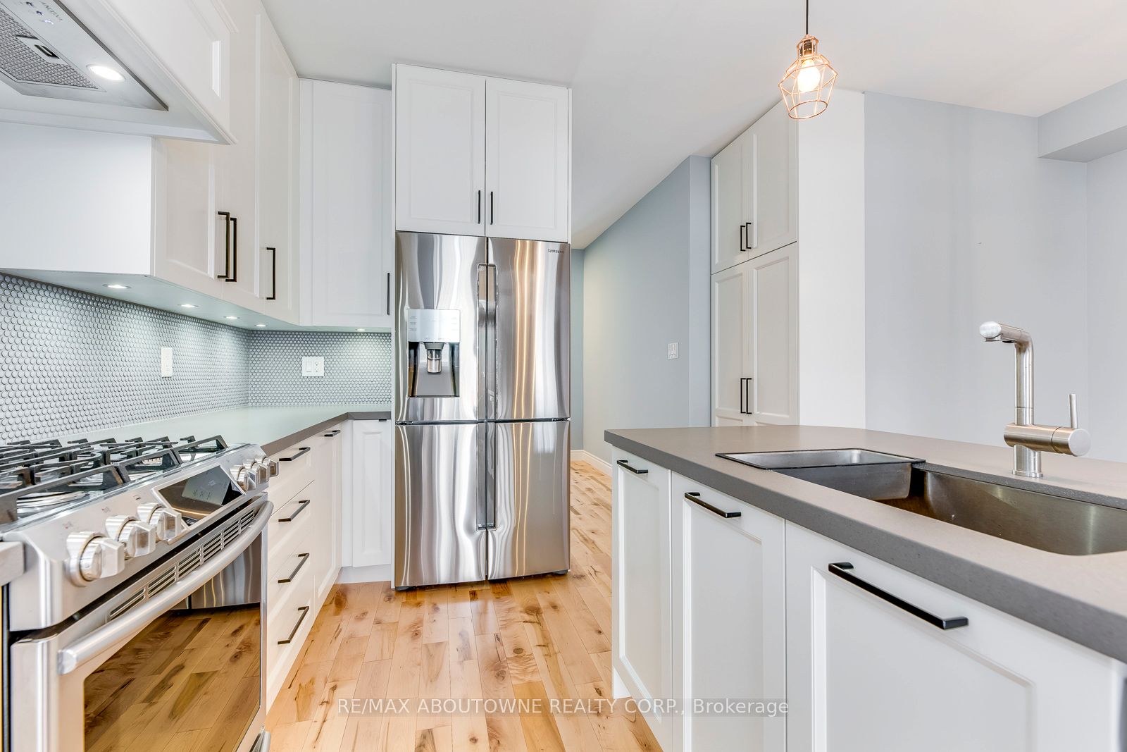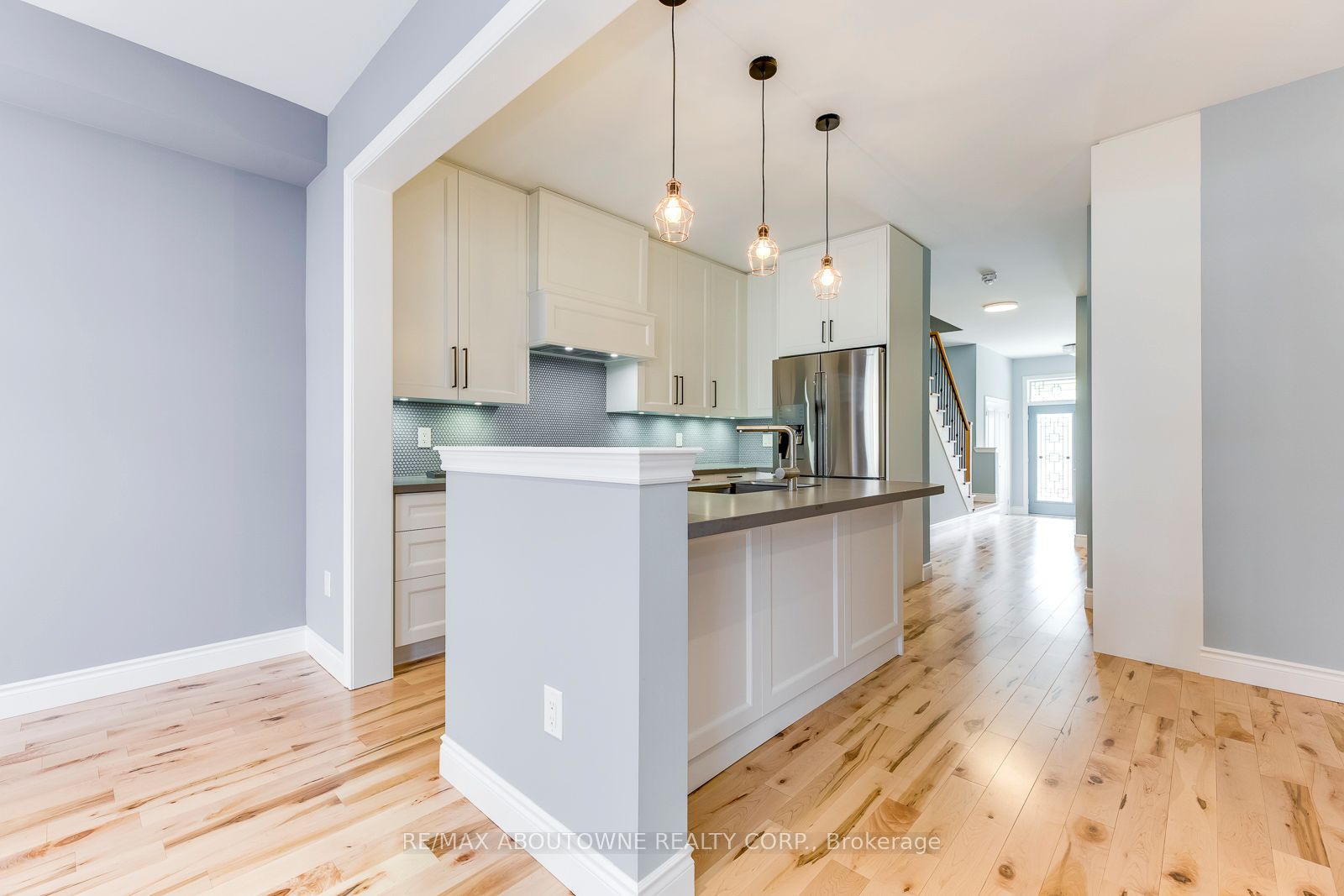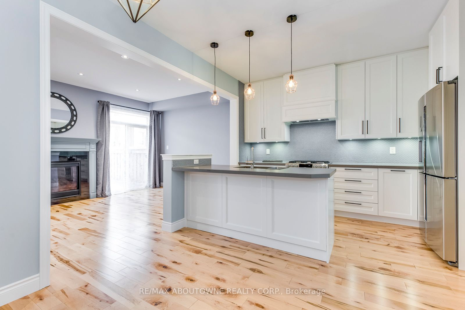 Bright and modern, this gorgeous traditional 2-storey townhome is extensively upgraded with high-end finishes throughout the 2,164 sf of finished living space. An elegant double front door invites you into the open-concept main floor living & dining, warmed by a gas fireplace, while 9' smooth ceilings & hardwood floors flow effortlessly throughout this level. The heart of the home is a custom white kitchen offering; full-height cabinetry, built-in-place range hood, soft close technology, pull-out recycling & pot drawers, deep pantry & concealed undercabinet lighting, premium stainless appliances inc. Samsung fridge & gas stove that will delight the budding chef. The style-conscious will appreciate the quartz countertops with breakfast bar, undermount sink, premium faucet & backsplash. A hardwood staircase guides to 3 upper level bedrooms inc. private master suite with a walk-in & ensuite with tiled shower & soaker tub. Hardwood floors lead down the hallway to well sized bedrooms offering plentiful natural light & shared bathroom. Downstairs, a fully-finished basement awaits, complete with a recreation room boasting plush carpeting, full bath, plenty of storage & laundry closet with full size appliances. There are so many extra features including a new water softener & reverse osmosis water system, and the home is freshly painted with upgraded lighting throughout. Outside, your entertainer's oasis awaits with a large deck as well as a gas BBQ line.