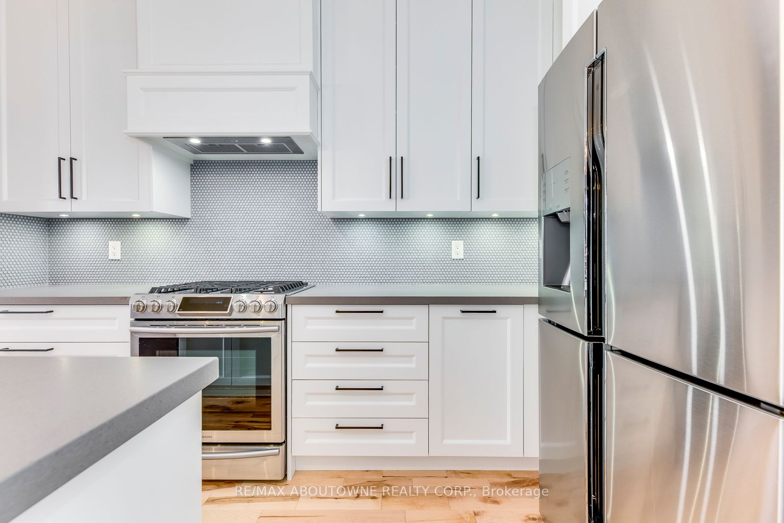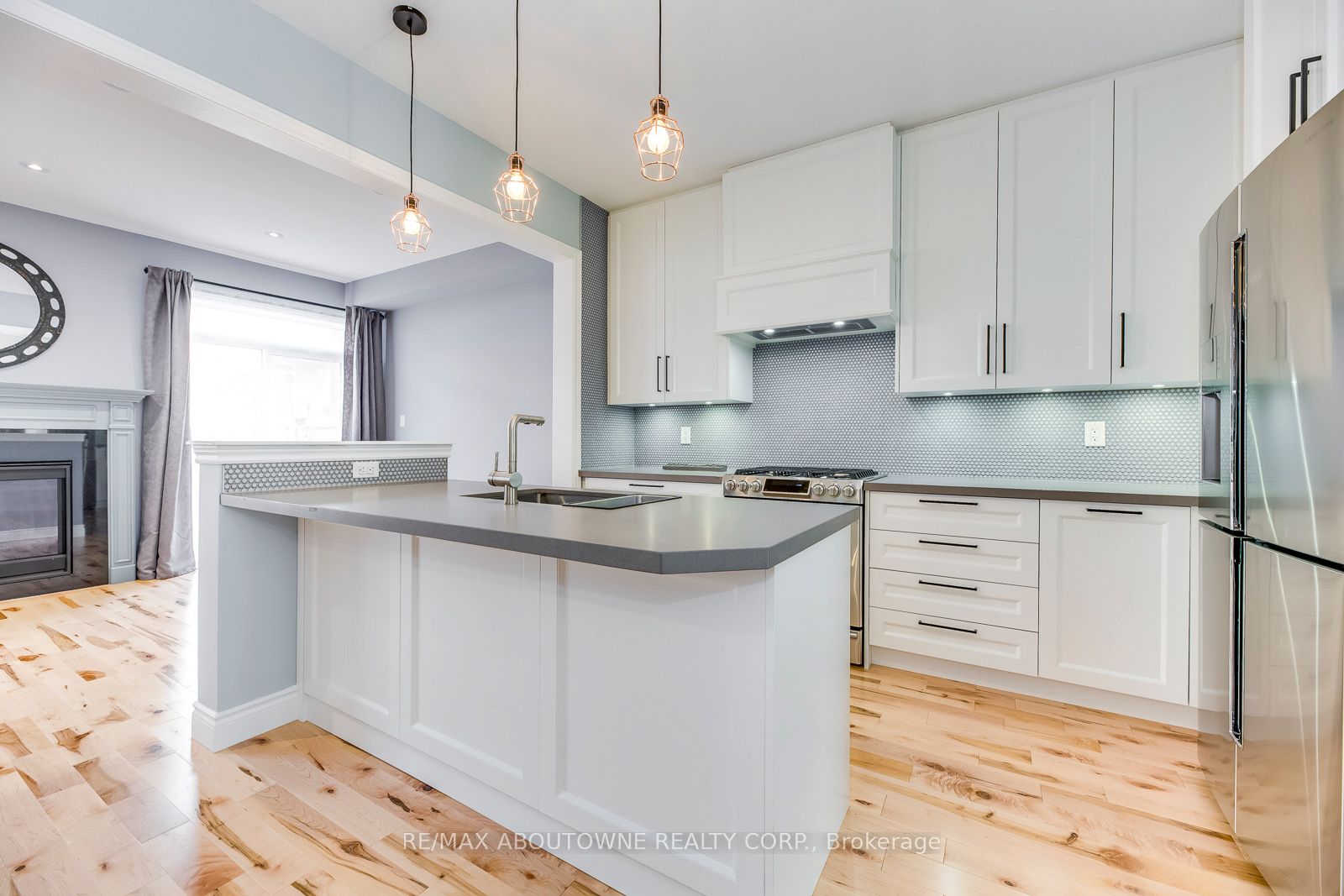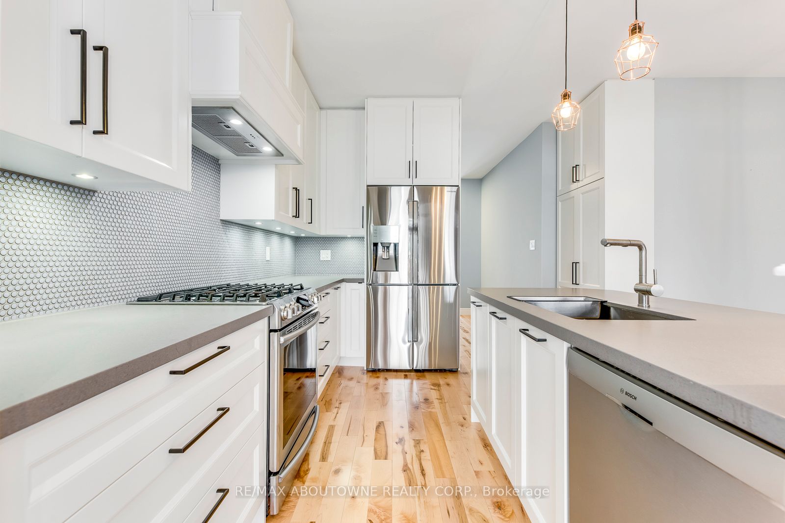 Bright and modern, this gorgeous traditional 2-storey townhome is extensively upgraded with high-end finishes throughout the 2,164 sf of finished living space. An elegant double front door invites you into the open-concept main floor living & dining, warmed by a gas fireplace, while 9' smooth ceilings & hardwood floors flow effortlessly throughout this level. The heart of the home is a custom white kitchen offering; full-height cabinetry, built-in-place range hood, soft close technology, pull-out recycling & pot drawers, deep pantry & concealed undercabinet lighting, premium stainless appliances inc. Samsung fridge & gas stove that will delight the budding chef. The style-conscious will appreciate the quartz countertops with breakfast bar, undermount sink, premium faucet & backsplash. A hardwood staircase guides to 3 upper level bedrooms inc. private master suite with a walk-in & ensuite with tiled shower & soaker tub. Hardwood floors lead down the hallway to well sized bedrooms offering plentiful natural light & shared bathroom. Downstairs, a fully-finished basement awaits, complete with a recreation room boasting plush carpeting, full bath, plenty of storage & laundry closet with full size appliances. There are so many extra features including a new water softener & reverse osmosis water system, and the home is freshly painted with upgraded lighting throughout. Outside, your entertainer's oasis awaits with a large deck as well as a gas BBQ line.
