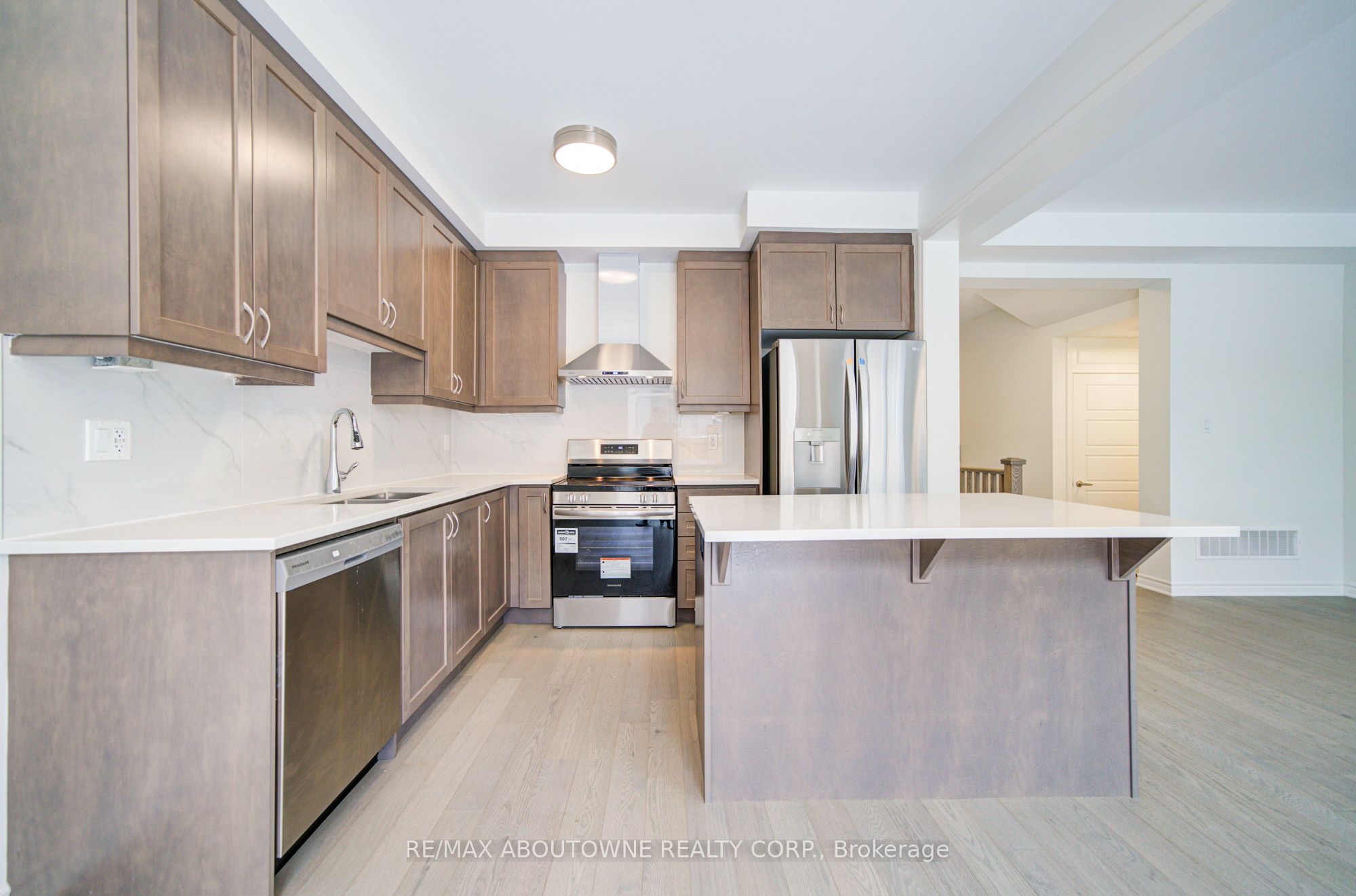 Welcome to this beautifully upgraded Mattamy Bellwood 2-storey townhome, offering over $50,000 in upgrades and thoughtfully designed living spaces. Featuring 9-foot ceilings and carpet-free flooring on both the main and second levels, this home is ideal for modern family living.Located on a quiet street in the desirable and fast-growing Joshua Meadows neighbourhood, this 3-bedroom, 3-bathroom 2 Storey home showcases a bright, open-concept layout. The sun-filled kitchen features a large quartz island, quartz backsplash, and stainless steel appliances, seamlessly flowing into the family room with a cozy electric fireplace-perfect for everyday living and entertaining. From the kitchen, you have direct access to the fully fenced backyard.An elegant oak staircase with square pickets leads to the upper level. The spacious primary bedroom includes a spa-inspired ensuite with double vanity, upgraded quartz countertops, and a frameless glass shower. All interior doors have been upgraded for a refined finish. The 9-foot ceiling basement offers excellent potential for future living space. This energy-efficient home is equipped with a geothermal HVAC system, triple-glazed windows, enhanced insulation, airtight construction, and improved ventilation for year-round comfort and lower utility costs. Hot water tank owned. Joshua Meadows is a family-oriented community with a new elementary school and neighbourhood park coming soon. Enjoy close proximity to Oakville's shopping, dining, Oakville GO Station, and easy access to Highway 403.