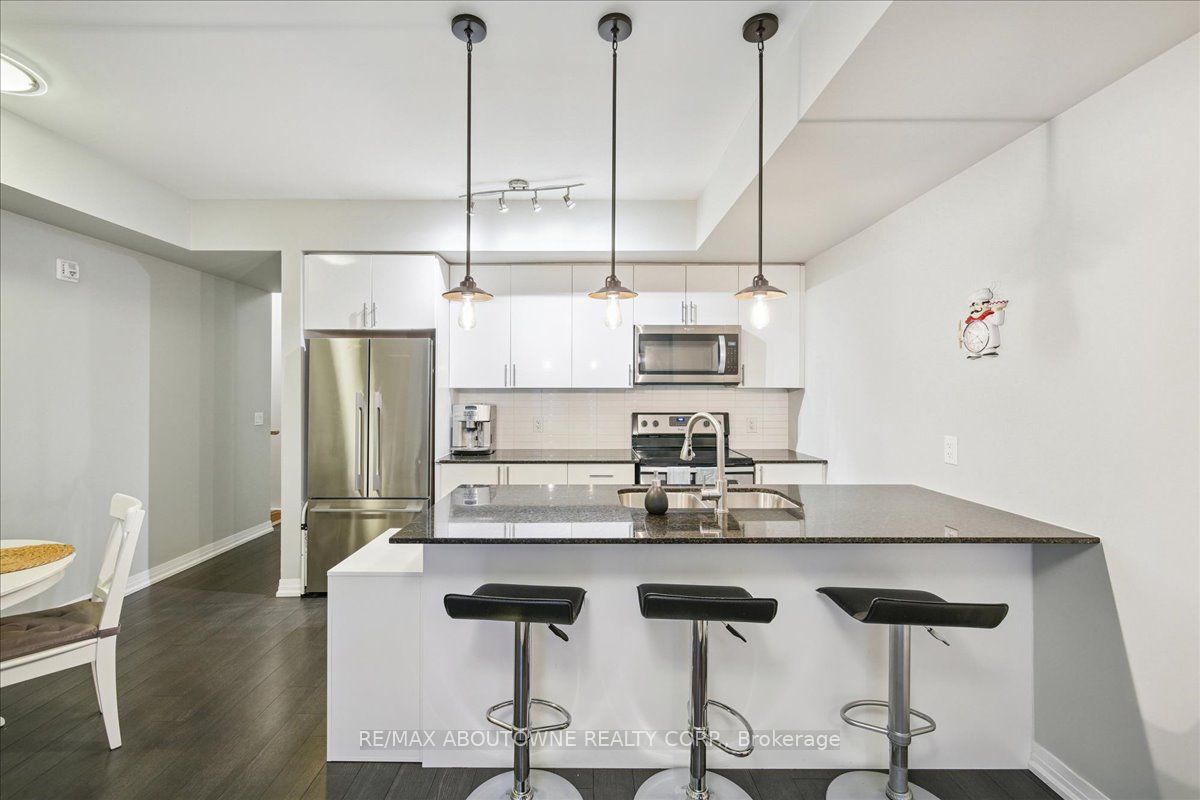 Welcome To This Bright & Beautiful 2 Bedroom, 2.5 Bathroom Stacked Townhome In One Of Milton's Most Desirable Communities! Offering A Perfect Blend Of Modern Design, Comfort & Convenience - Ideal For First-Time Buyers, Downsizers, Or Anyone Seeking A Stylish Low-Maintenance Home. The Open-Concept Layout Features 9' Ceilings, Oversized Windows & Rich Hardwood Flooring Throughout Main Level. The Kitchen Shines With Granite Counters, A Large Island, Extended Cabinetry, Classic Subway Tile Backsplash & Walk-Out To A Private Outdoor Space - Perfect For Morning Coffee Or Evening Relaxation! The Primary Bedroom Boasts A Walk-In Closet & A Modern 3-Pc Ensuite W/ Glass Shower, While The Second Bedroom, 4-Pc Bath, Laundry & Ample Storage Complete The Home. Close To GO Station, Parks, Schools, Shopping, Scenic Escarpment Trails & Major Highways - This One Has It All!