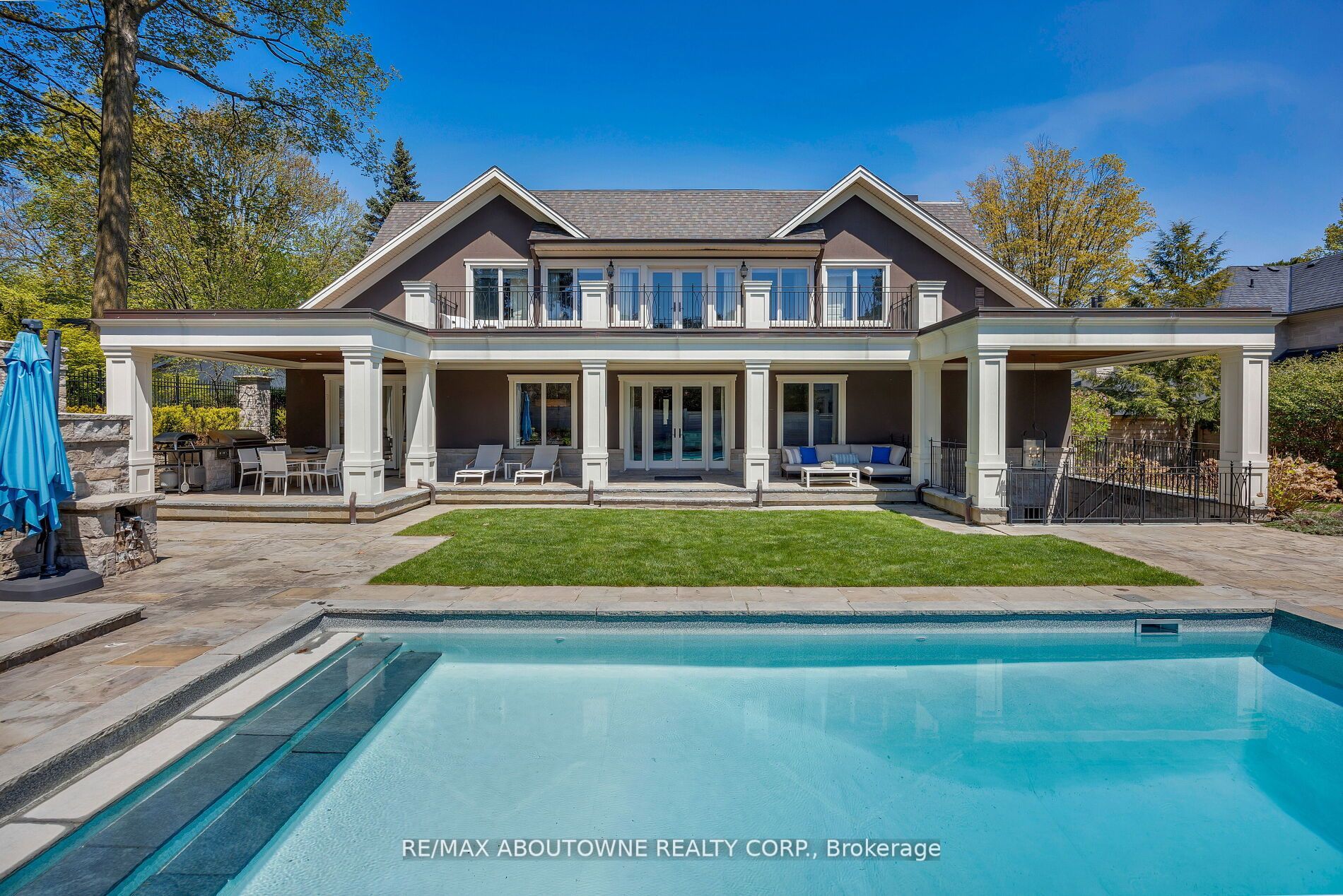 Welcome to 64 Brentwood Road, where a exquisitely crafted home masterfully blends timeless design and modern features. Located on one of the most coveted and prestigious streets and steps to the shoreline of Lake Ontario, this exceptional home is situated on an expansive 100 x162 lot and offers over 10,000 sq ft of luxurious living space. Designed by award winning architect Michael Pettes and built by renowned builders PCM, this elegant home offers the finest finishes throughout. The property is beautifully landscaped, providing a private and resort like outdoor oasis complete with a saltwater pool with cascading waterfall, perfect for summer relaxation as well as outdoor gourmet kitchen and wood burning fireplace for effortless entertaining as well as a outdoor bathroom for privacy for guests. Inside, indulge in a impeccably crafted and light filled living space with heated floors, designer light fixtures and finishes. The heart of the home is the gourmet kitchen with Wolf and Subzero appliances, with an additional servery and a spacious pantry. Upstairs the home boasts 4 generous bedrooms, each with their own ensuite for privacy and comfort for family and guests. The primary bedroom offers a relaxing retreat with spa like bathroom and large walk in closet with balcony and views of the manicured rear yard. A fully finished walk up basement offers a large recreation and games space with built-in bar, climate controlled wine cellar, home theatre, gym as well as a 5th bedroom/ nanny suite with ensuite bathroom. With a lavish stone exterior, a 3 car garage with additional lift, elevator and safe room, this charming home seamlessly combines elegance with luxury offering the best of both worlds. Whether enjoying the expansive interior, relaxing by the pool, or strolling to the lake, this home provides an unparalleled lifestyle in one of Oakville's most sought-after neighbourhoods.