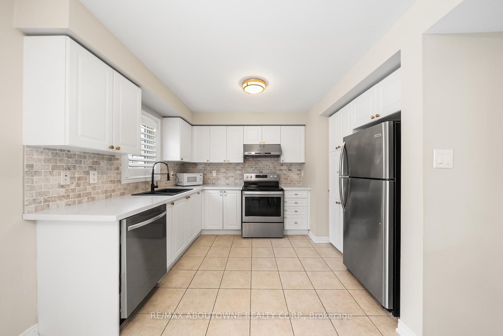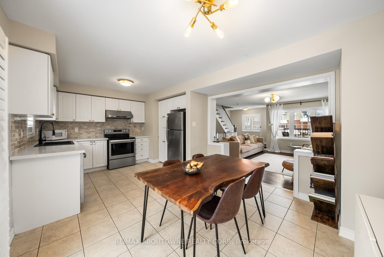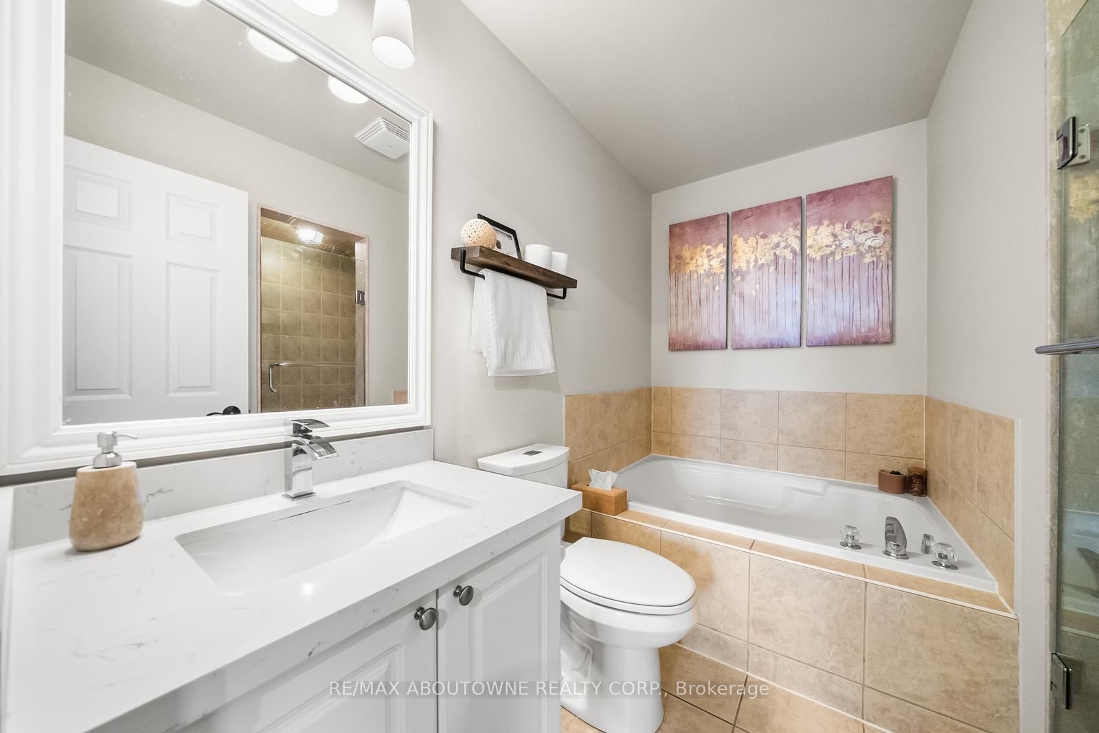Welcome to this beautifully updated townhome in Oakville's vibrant, family-friendly Oak Park community, offering a thoughtfully designed open-concept layout ideal for everyday living and entertaining. The main level features engineered hardwood flooring and a bright living and dining area filled with natural light from both front and back exposures. The well-connected dining space flows seamlessly into the kitchen and living room, while the inviting living area offers a walkout to a covered balcony. A convenient powder room completes this level. The updated kitchen includes new countertops, hardware, and new appliances. New light fixtures throughout the home, along with a new washer and dryer, enhance its move-in-ready appeal. Upstairs, engineered hardwood continues throughout, with two spacious bedrooms, each featuring a private ensuite bathroom-a rare and highly desirable layout. The primary bedroom offers two closets, and the primary ensuite includes a new glass shower door. All new door hardware has been installed throughout. A rare double car garage with inside entry completes the home. Ideally located just steps to parks, trails, top-rated schools, shopping, and everyday amenities, with quick access to major highways, public transit, and Oakville's Uptown Core.