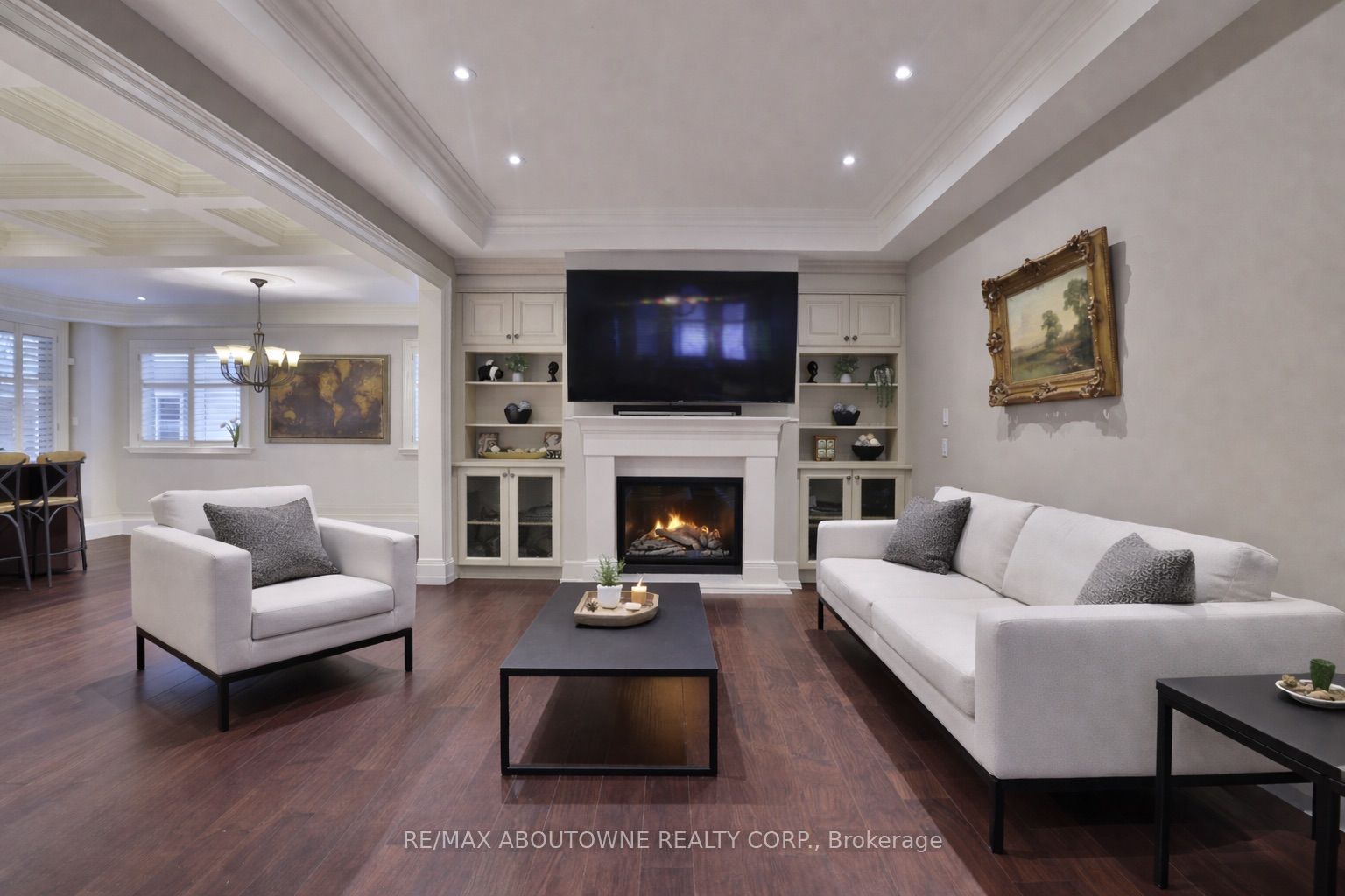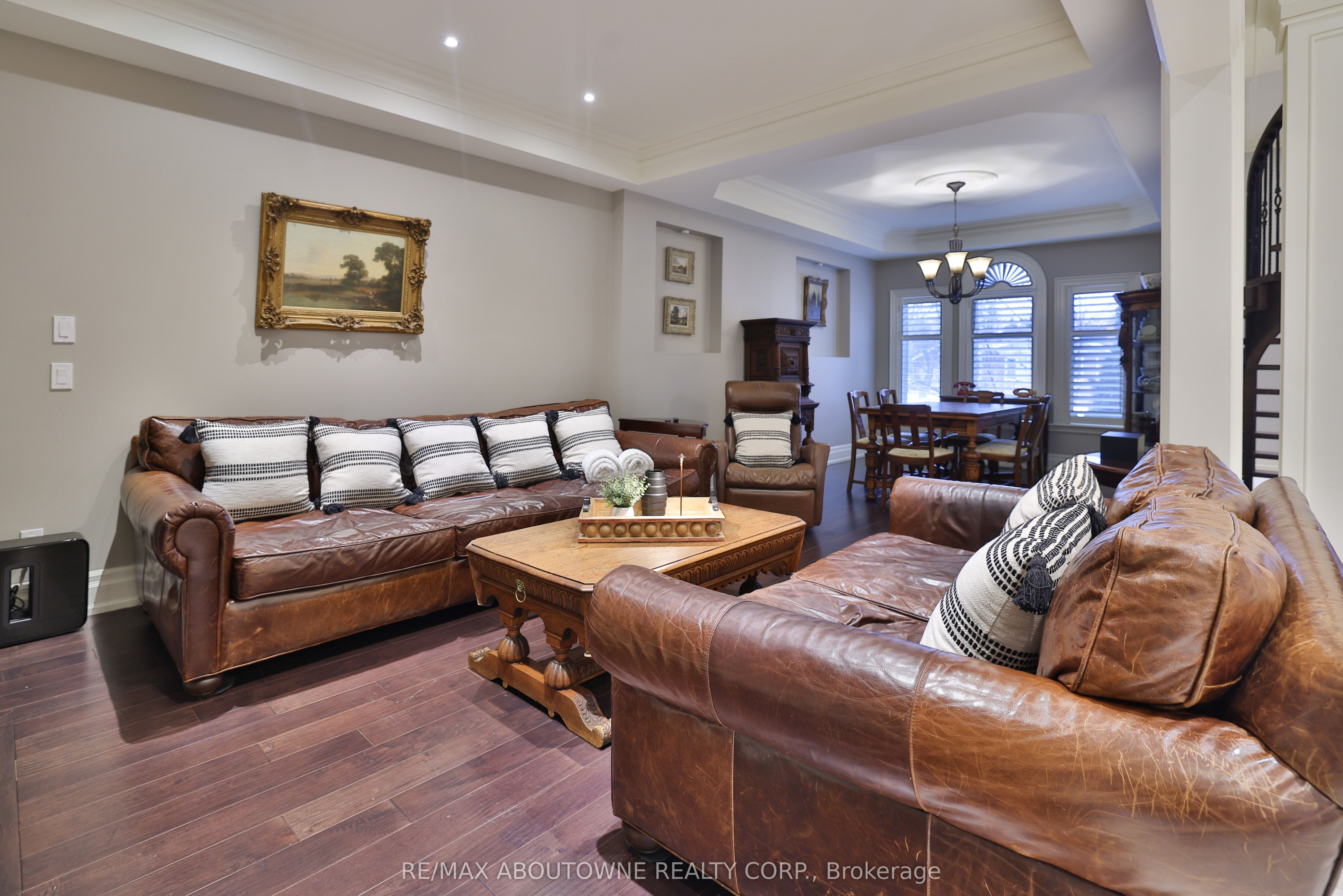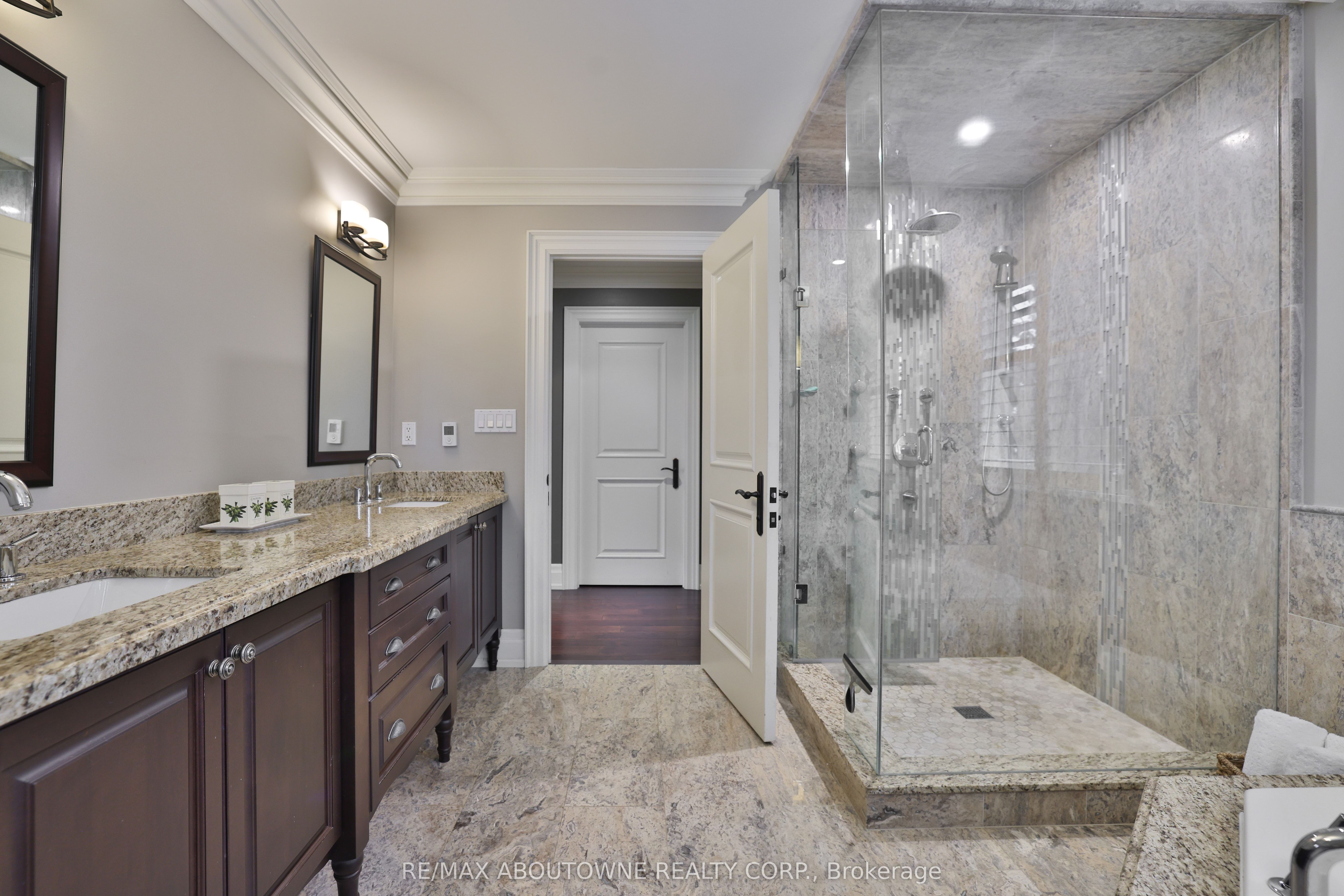 An exceptional custom residence set on a commanding 150 x 75 ft lot in one of Southwest Oakville's most established and coveted neighbourhoods. Offering 5 bedrooms across three beautifully finished levels, this home showcases a rare and highly desirable layout with two primary suites - one on the main floor and a second grand retreat upstairs. Designed for elevated living and effortless entertaining, the home features refined principal rooms including formal living and dining areas, a private office, two powder rooms, and a full laundry suite. At its heart, the chef's kitchen impresses with rich cabinetry, granite countertops, marble flooring, a large centre island with seating, built-in stainless steel double wall ovens, gas cooktop, beverage fridge, and seamless flow into the family room with gas fireplace and custom built-ins. The main-floor primary suite offers privacy, an ensuite bath, and walk-in closet - ideal for multigenerational living or main-level convenience. Upstairs, the second primary retreat feels like a private sanctuary with its own fireplace, spa-inspired ensuite, and generous dressing space. Two additional bedrooms share a spacious 5-piece Jack & Jill bath, creating a functional family wing. The fully finished lower level enhances the lifestyle appeal with a large recreation lounge, wet bar, gym area, fifth bedroom, and full bath - perfect for guests or extended family. Outdoors, a private backyard oasis framed by mature landscaping features an inground pool, pergola-covered lounge, multiple hardscape entertaining areas, and a detached shed. A double garage with upgraded tiled flooring and private driveway complete this distinguished offering. Five bedrooms. Two primary suites. Three finished levels. A rare estate-sized lot in Southwest Oakville. 390 Seaton Drive - a home of scale, versatility, and enduring elegance.