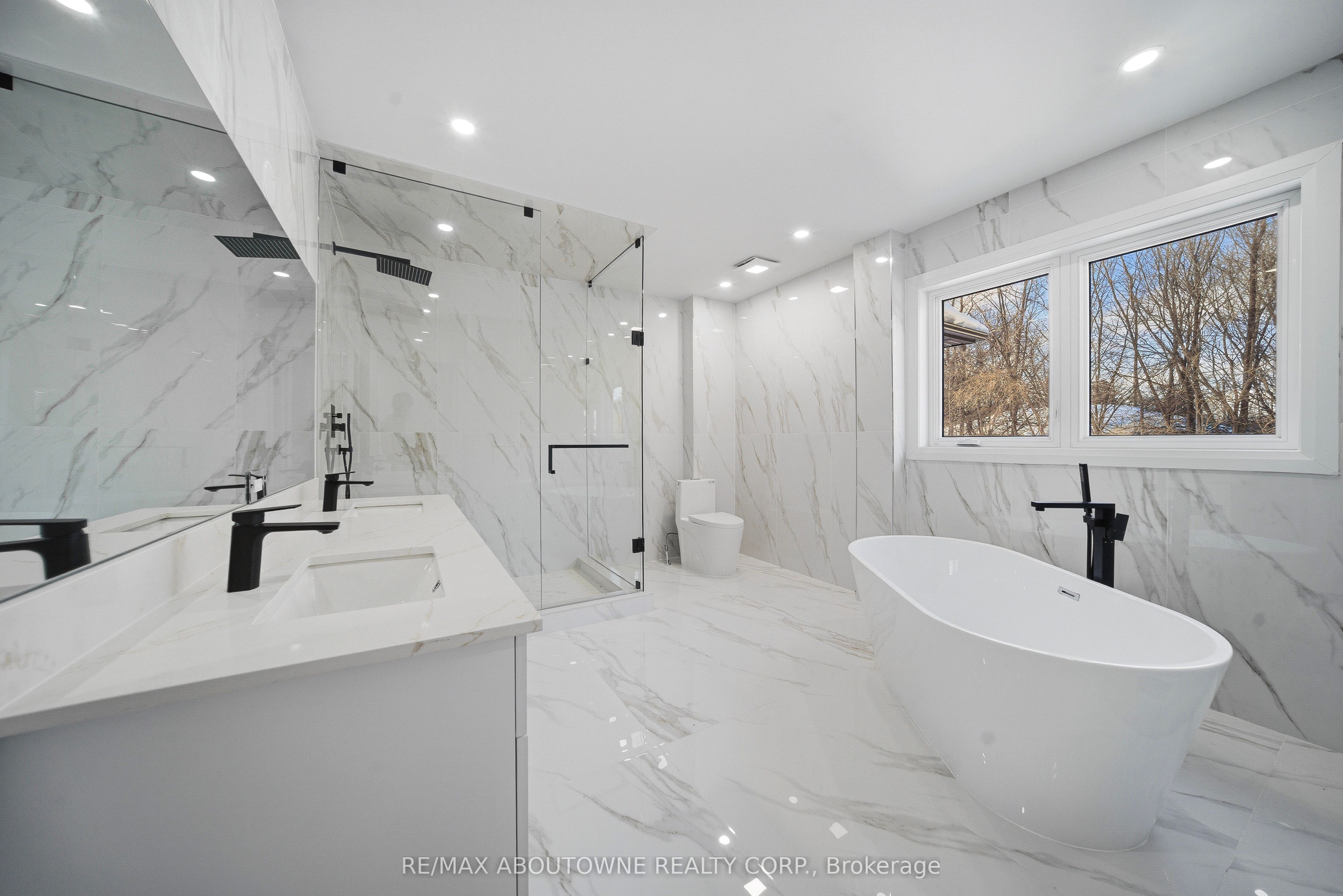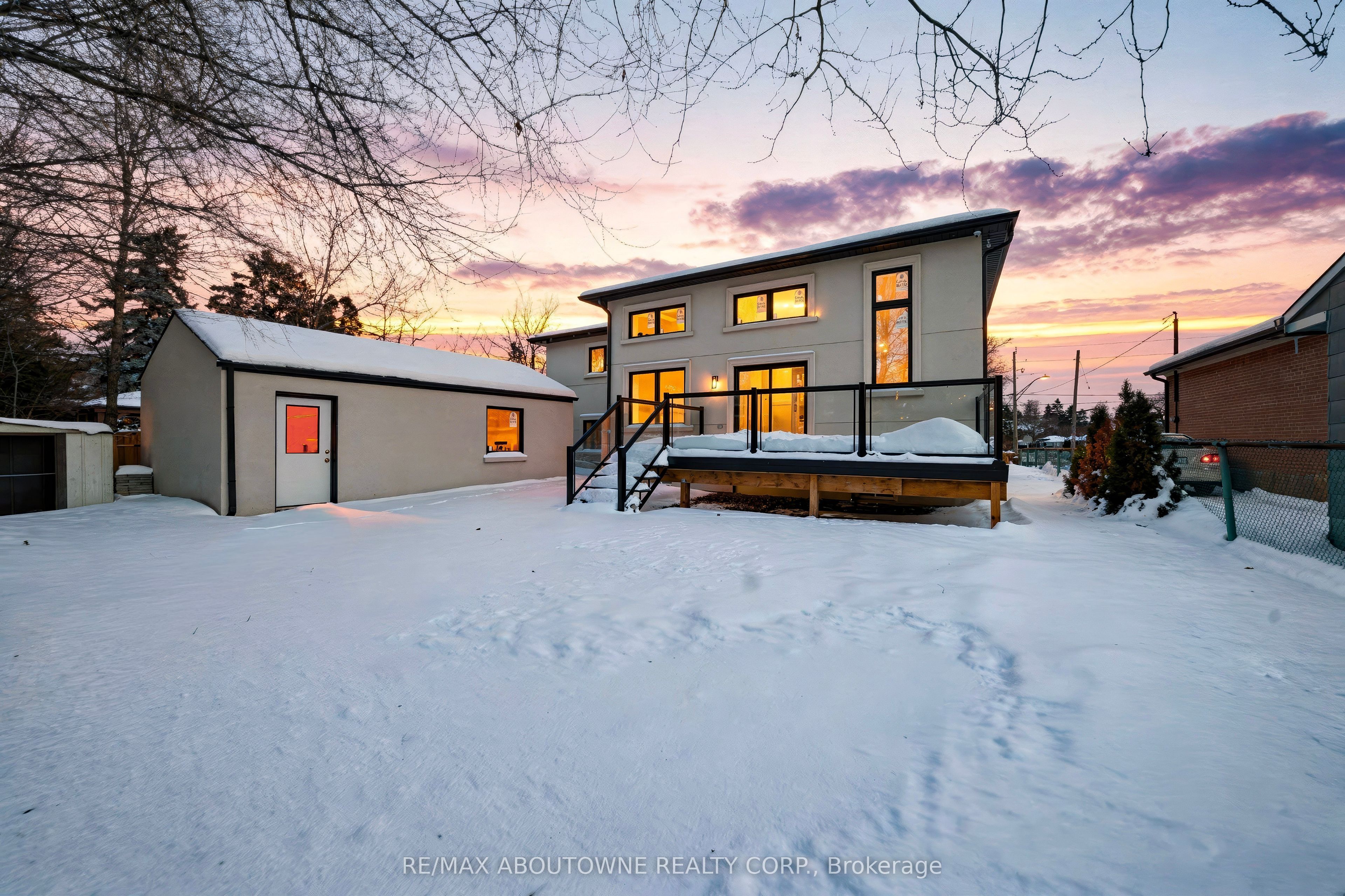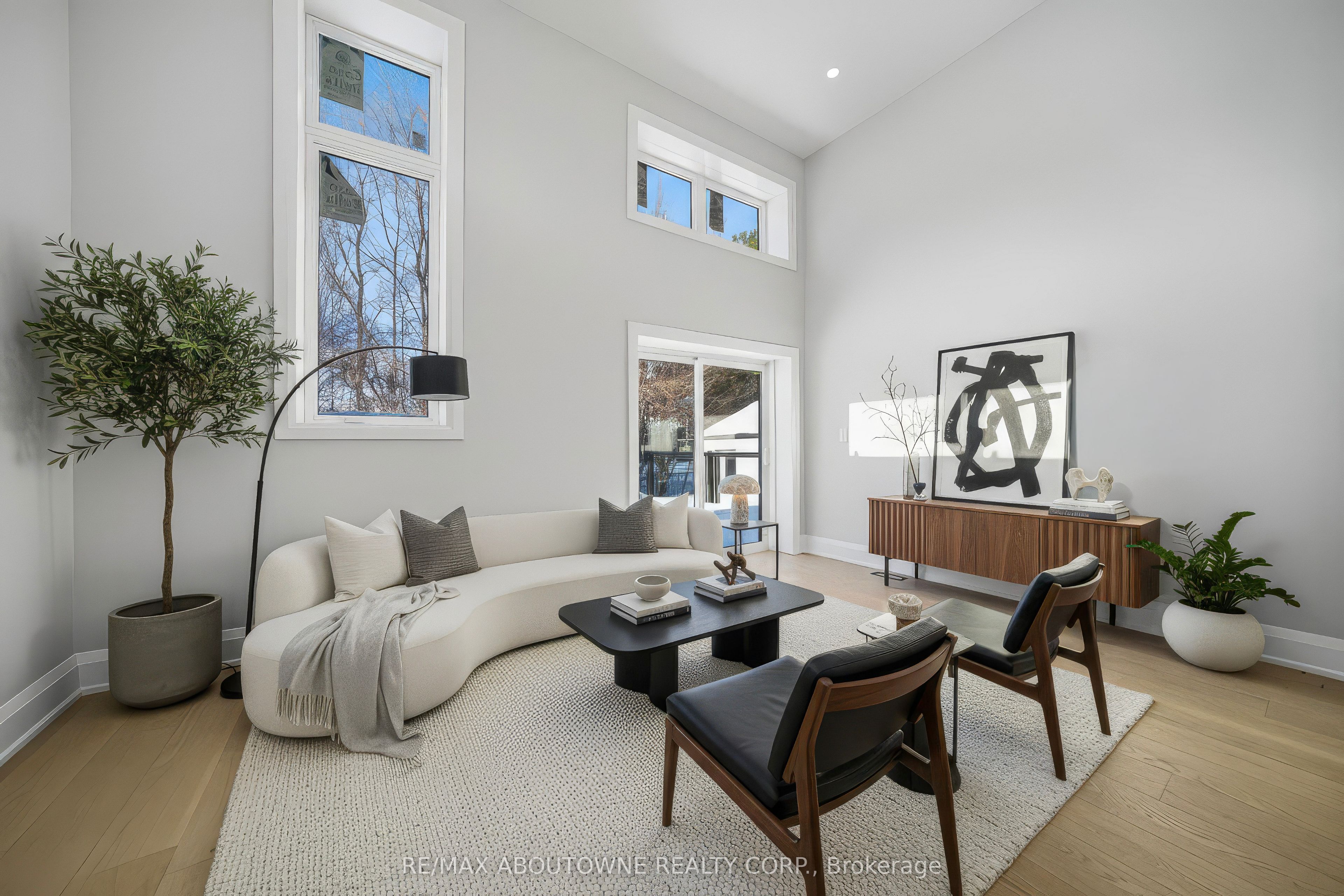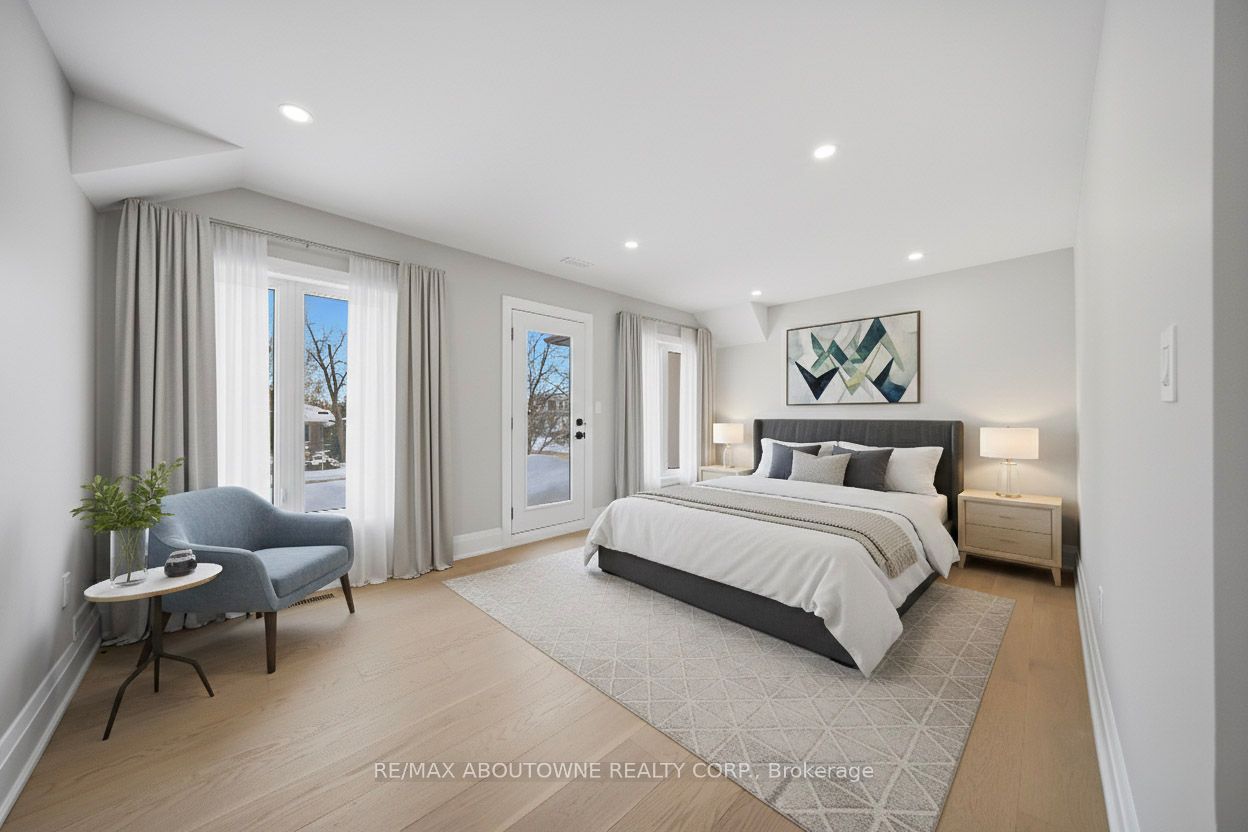 Welcome to an exceptional and spectacular home in the prestigious sought-after Bronte neighbourhood, where architectural elegance meets modern luxury. Soaring 14-foot ceilings on the main level create a striking sense of grandeur, complemented by expansive windows that flood the home with natural light. The thoughtfully designed main floor offers three spacious bedrooms and two full bathrooms, while the private primary retreat is elevated on a second-floor loft. The open-concept living, dining, and kitchen spaces are ideal for both everyday living and upscale entertaining. The designer kitchen features premium built-in JennAir appliances, crisp white cabinetry, quartz countertops, an oversized centre island, custom pantry storage, and a discreet computer niche. The primary suite is a true sanctuary, showcasing a spa-inspired 5-pieceensuite, a generous walk-in closet, and a rare walkout to a glass-enclosed balcony overlooking the front yard. A fully finished basement enhances the home's versatility, offering two bedrooms, two full bathrooms, Stainless Steel Appliances, separate laundry, and a private entrance. Step outside to a beautifully extended family room leading to a large deck with sleek glass railings-perfect for refined outdoor entertaining. A well-insulated workshop/storage shed completes the backyard retreat. Ideally located near QE Community Park, top schools, Bronte Harbour, Bronte GO Station, and major highways.**Virtually Staged Pictures**