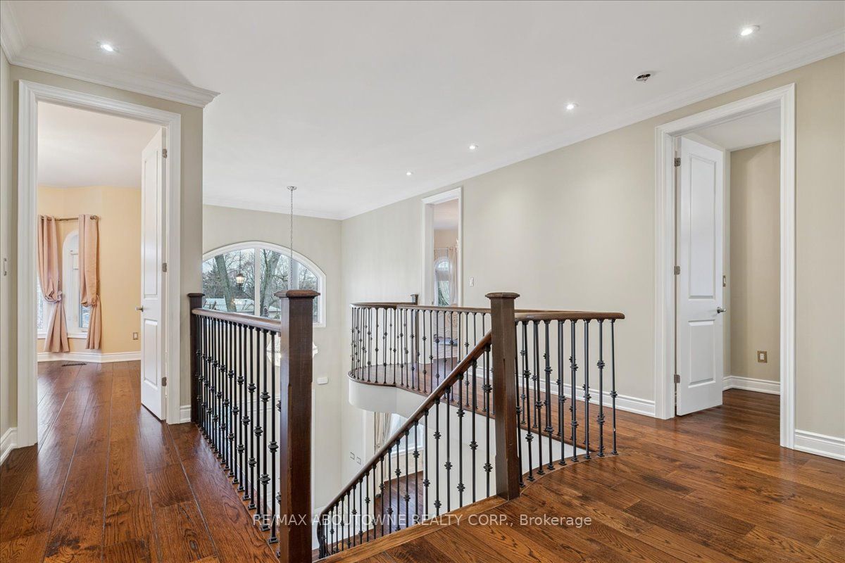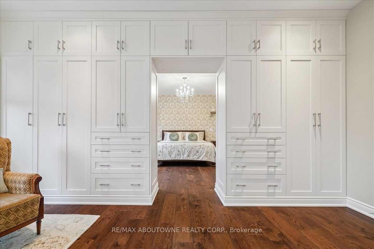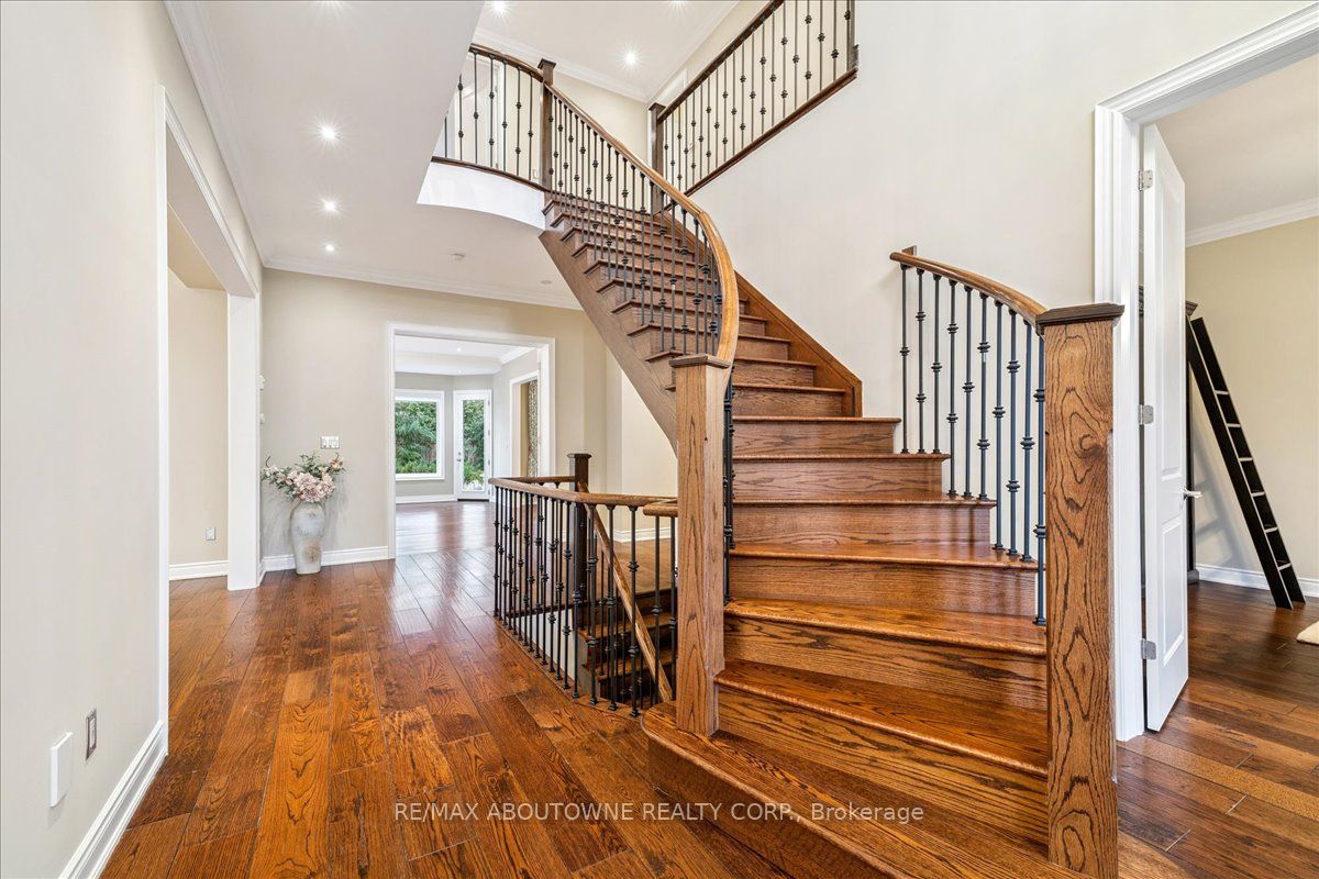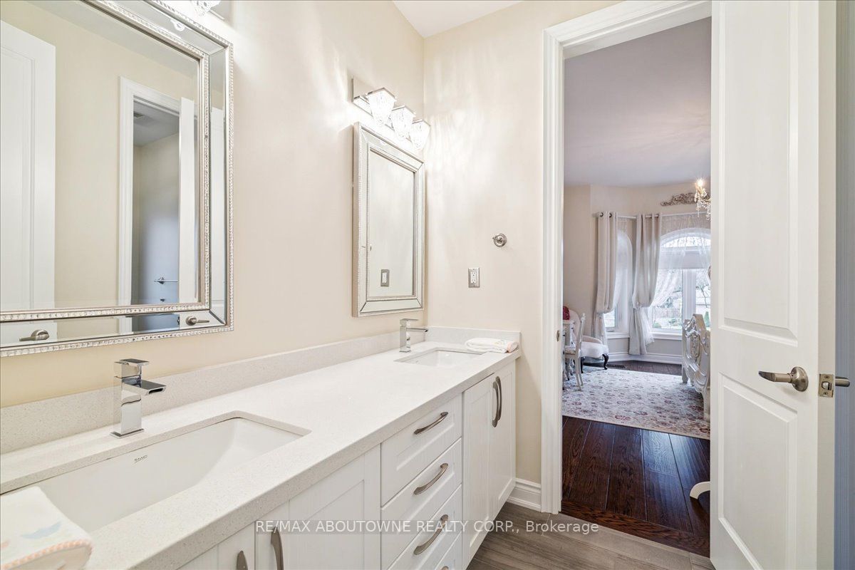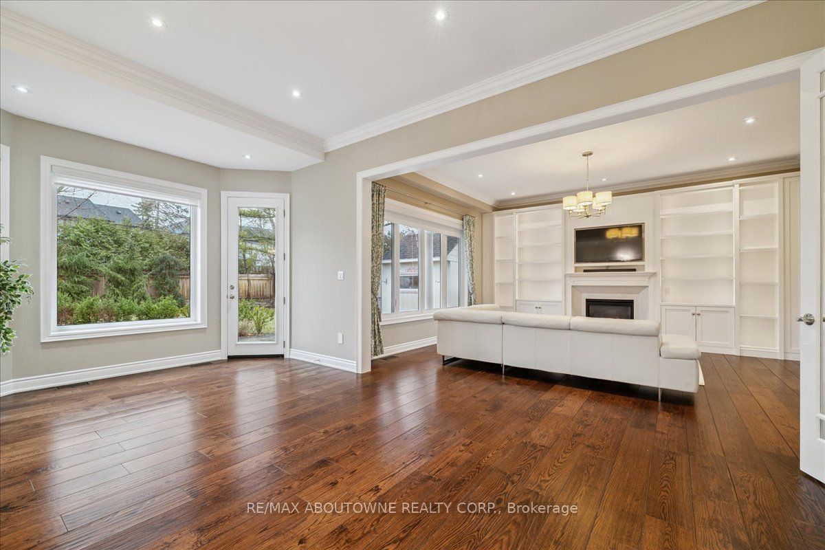 Welcome to this exceptional home in the heart of sought-after West Oakville, where timeless design meets modern comfort. Discover refined living, where elegance, space, and privacy come together on a premium lot with gated driveway, double car garage & landscaped front & back yards. This large home offers an ideal balance, perfect for both executive entertaining & a family home. An impressive cathedral-ceiling entrance with stunning chandelier fills the home with natural light & creates a grand first impression. The main floor features a spacious open-concept living area that offers elegant finishes & seamless flow throughout. The large gourmet kitchen with wine & bar fridge, & space for a large kitchen table for those informal get togethers is a home chef's delight. Family room, with gas fireplace and built-in bookshelves, can be closed off with large French doors. Separate dining & living rooms for more formal entertaining. A large main floor office, walk-in closet, powder room & mud room with access to the attached double car garage complete this level. The second floor delivers comfort & privacy for family members & guests alike. The primary bedroom has ample storage with beautifully designed built-in closets, a separate walk-in closet & 5-pc ensuite. Each bedroom is generously sized. Two bedrooms share a 5-pc ensuite & the 4th bedroom offers a 4-pc ensuite & walk-in closet. The beautifully finished walk-out basement provides incredible versatility, complete with in-law suite capability, good size bedroom with large walk-in closet, 3-pc bath, entertaining area, & kitchenette, ideal for multi-generational living, extended family, or potential income opportunities. Located in one of Oakville's most desirable neighbourhoods, close to top-rated schools, parks, lakefront trails, Walmart, Metro, LCBO & QEW, this home offers the perfect blend of luxury, functionality, & lifestyle. A rare opportunity in West Oakville - don't miss your chance to call it home.