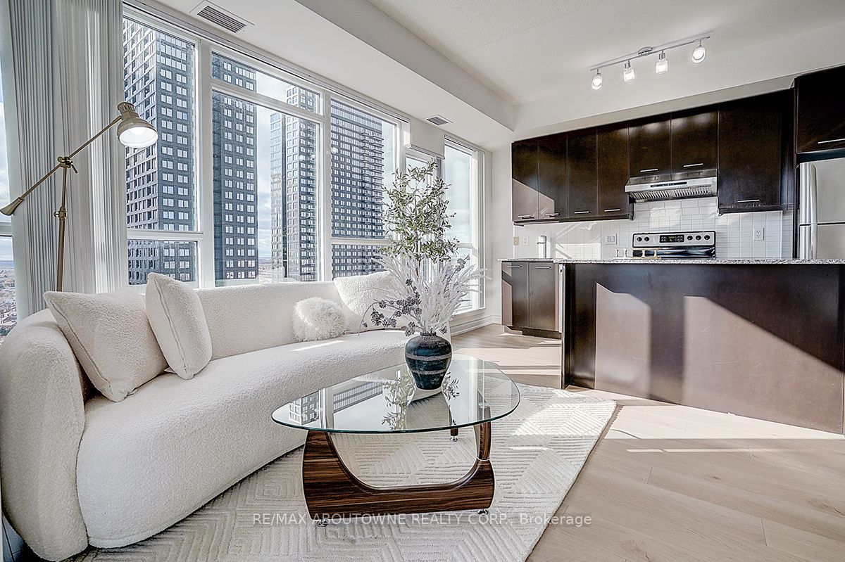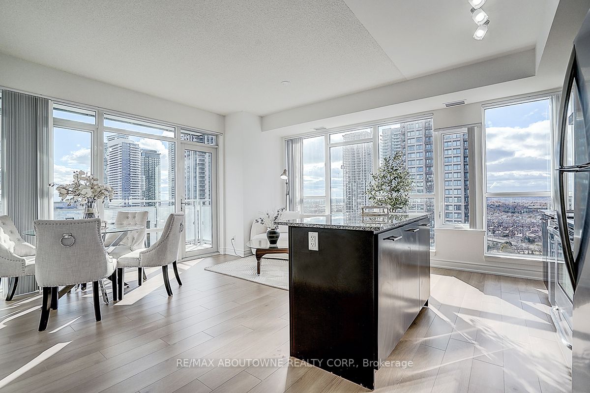 Experience modern convenience living in this open-concept southwest corner unit, ideally situated in one of the best locations in City Centre Mississauga. Bathed in natural sunlight, this spacious home features impressive floor-to-ceiling windows and soaring 9 feet ceilings throughout. Offering 853 sq. ft. of well-designed living space, the unit is further enhanced by an expansive wrap-around balcony-perfect for seamless indoor-outdoor living. Immaculately maintained condition with fresh NEW painting, BRAND NEW laminate flooring, BRAND NEW bathroom countertops and sinks & BRAND NEW dishwasher. Enjoy the convenience of a premium parking spot with no adjacent cars, providing added ease and comfort.Residents enjoy world-class amenities, including a 24-hour concierge, fully equipped fitness centre, full-size basketball court, party and media rooms, rooftop terrace, and more! Just steps to Square One Shopping Centre, the Living Arts Centre, Sheridan College, GO Transit, restaurants, the library, etc. Easy access to public transit and Highways 403/401!